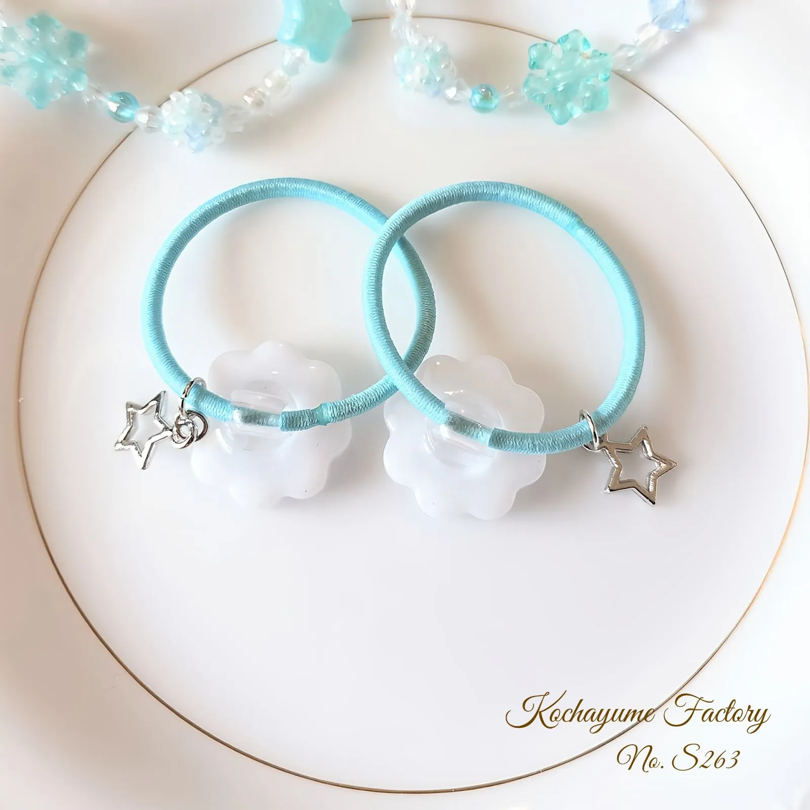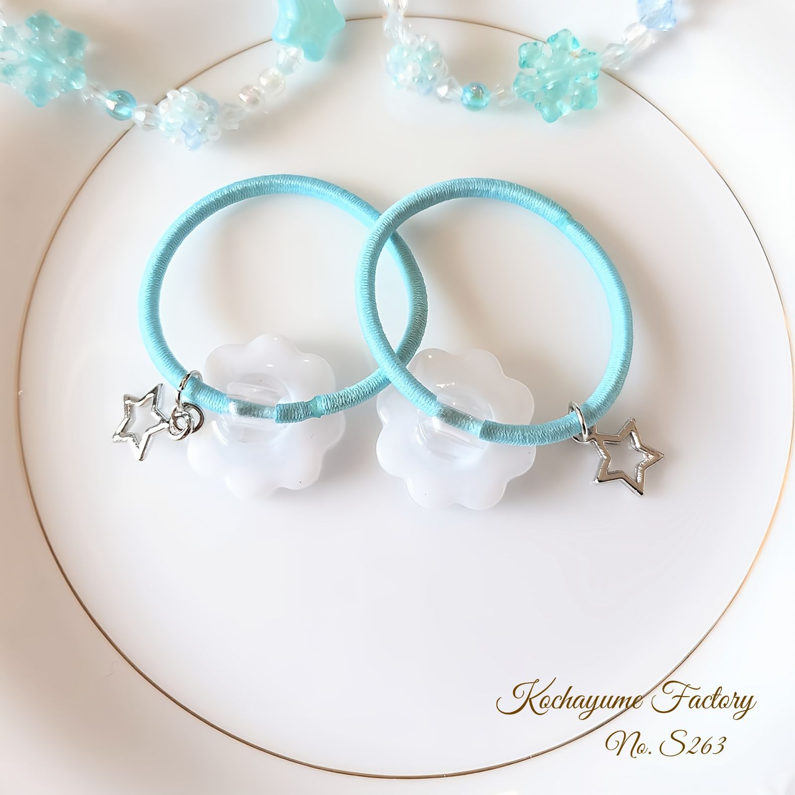 さらにシルバーのお星さまのチャームを付けて、ゆめかわいいヘアゴムに仕上げました(*^^*)