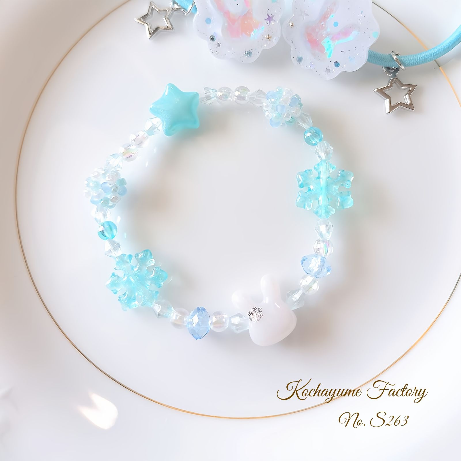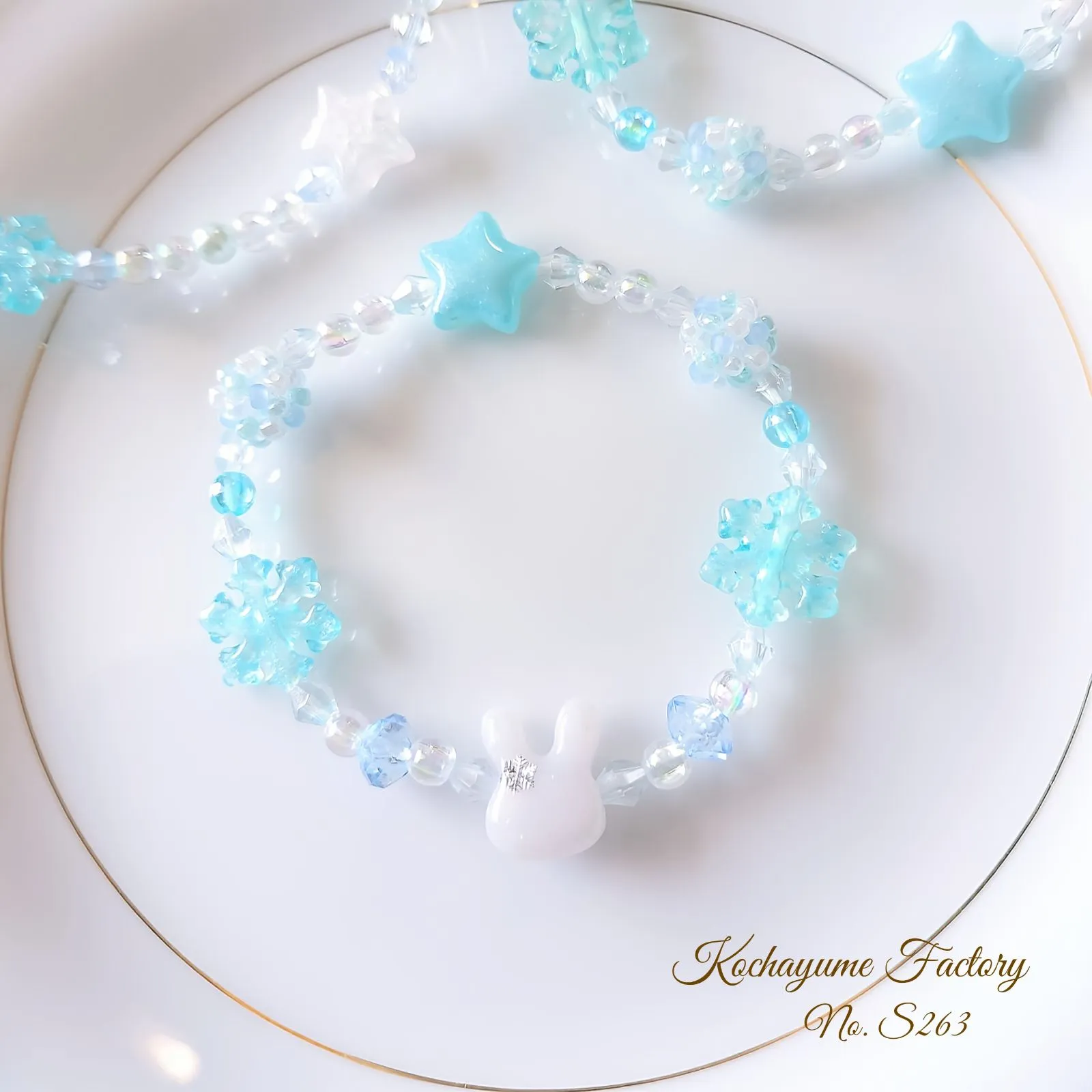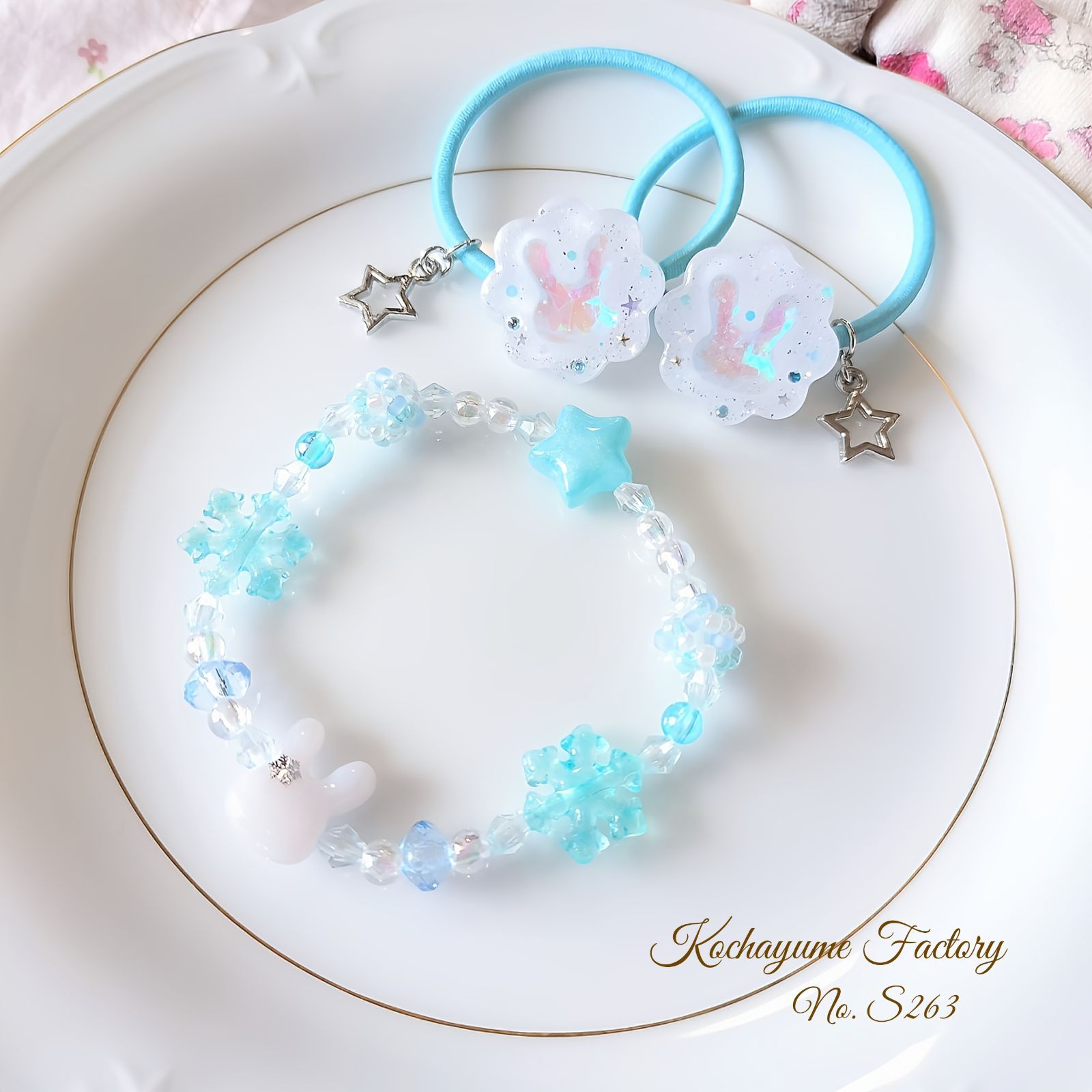 うさぎが好き、水色が好き、ゆめかわが好き、雪がキラキラしたものが好き、雪が好き、女の子らしいコーディネートが好きなお子さまにいかがでしょうか?