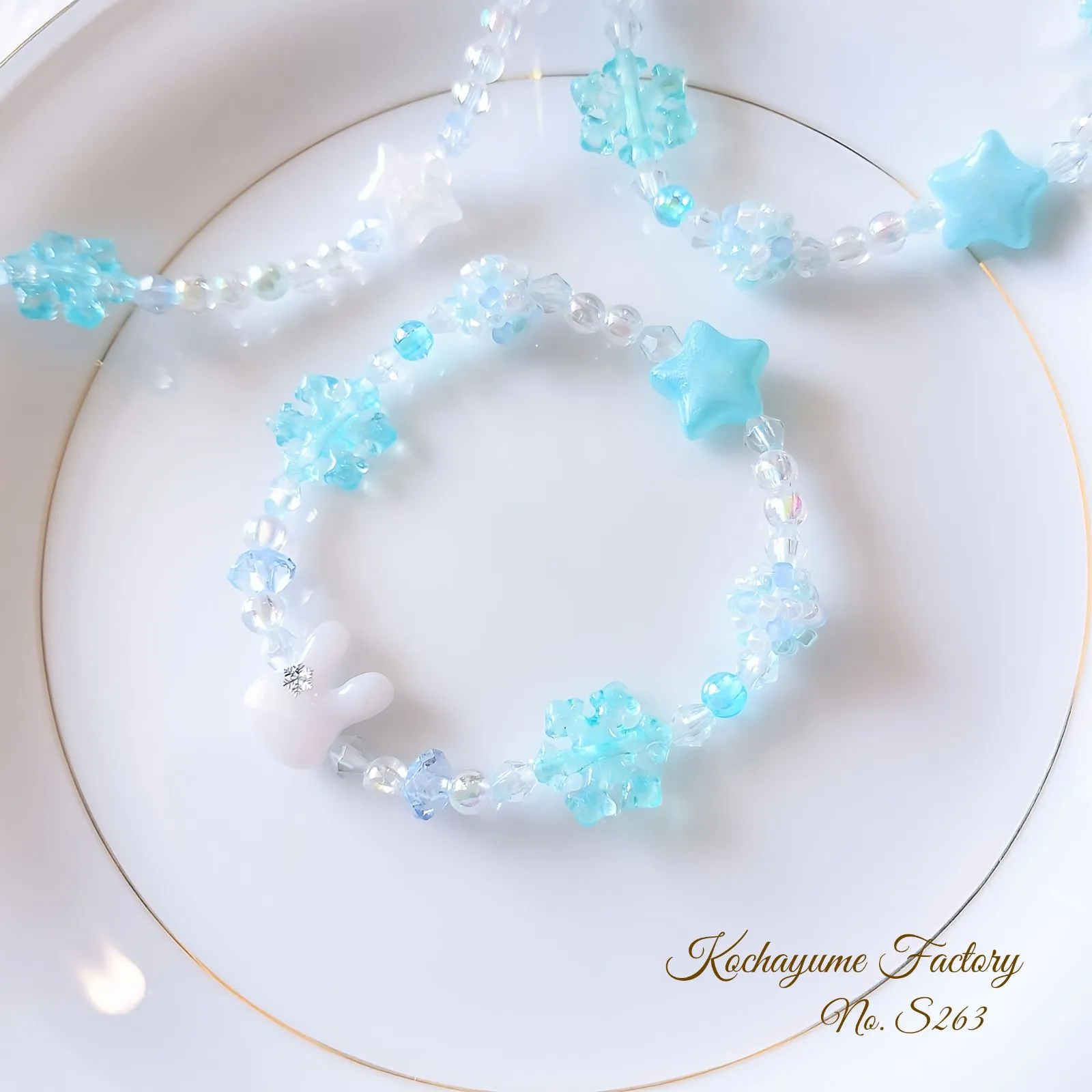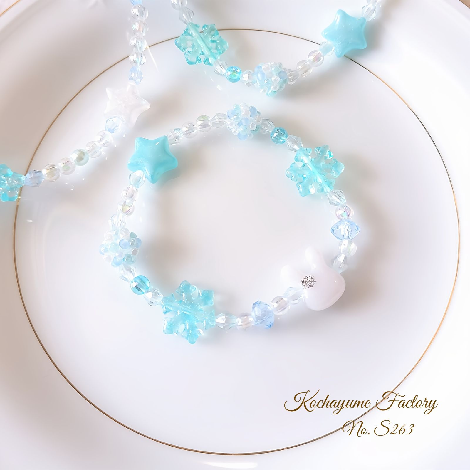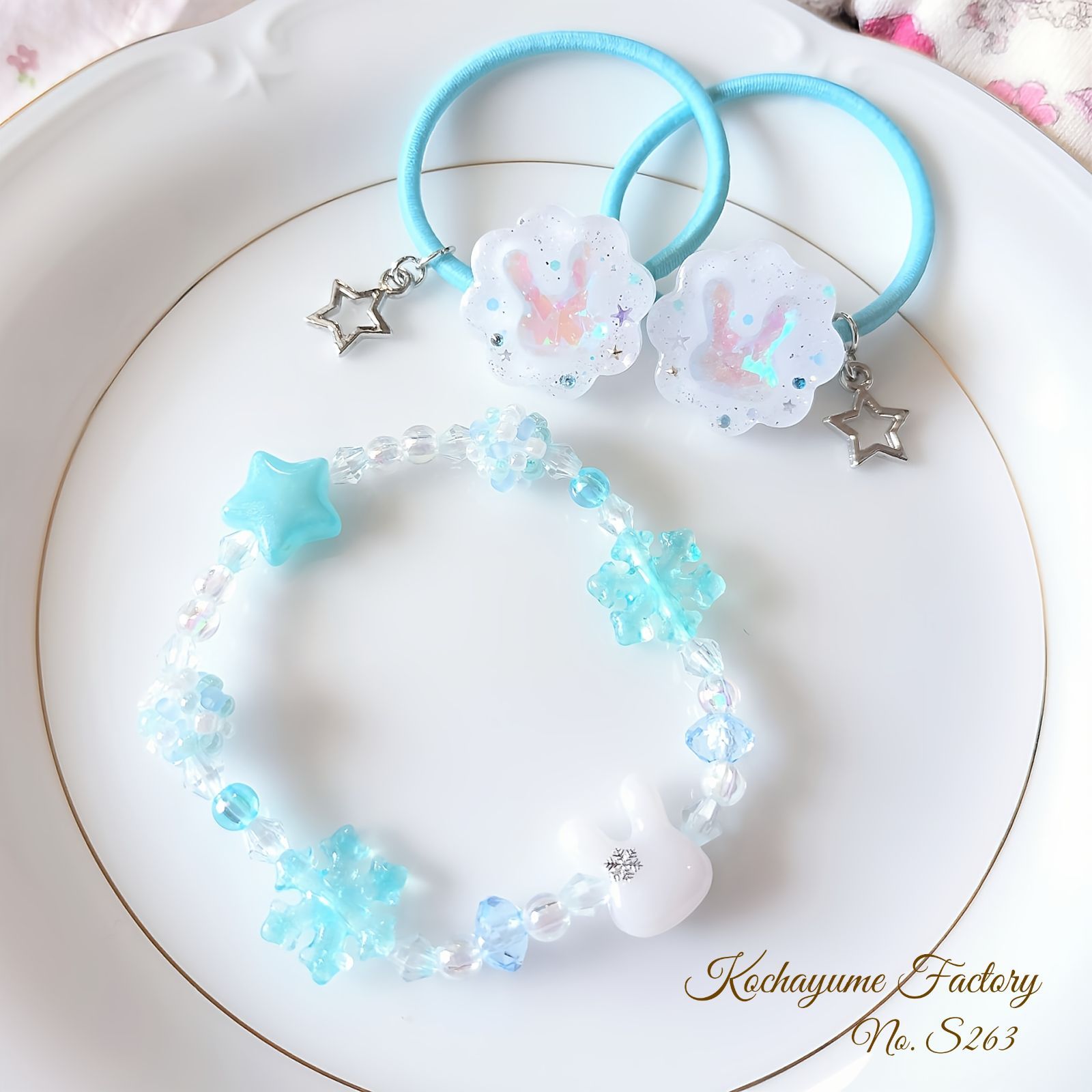 うさぎが好き、水色が好き、ゆめかわが好き、雪がキラキラしたものが好き、雪が好き、女の子らしいコーディネートが好きなお子さまにいかがでしょうか?
