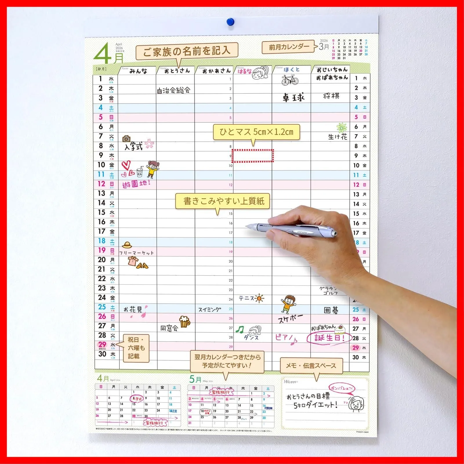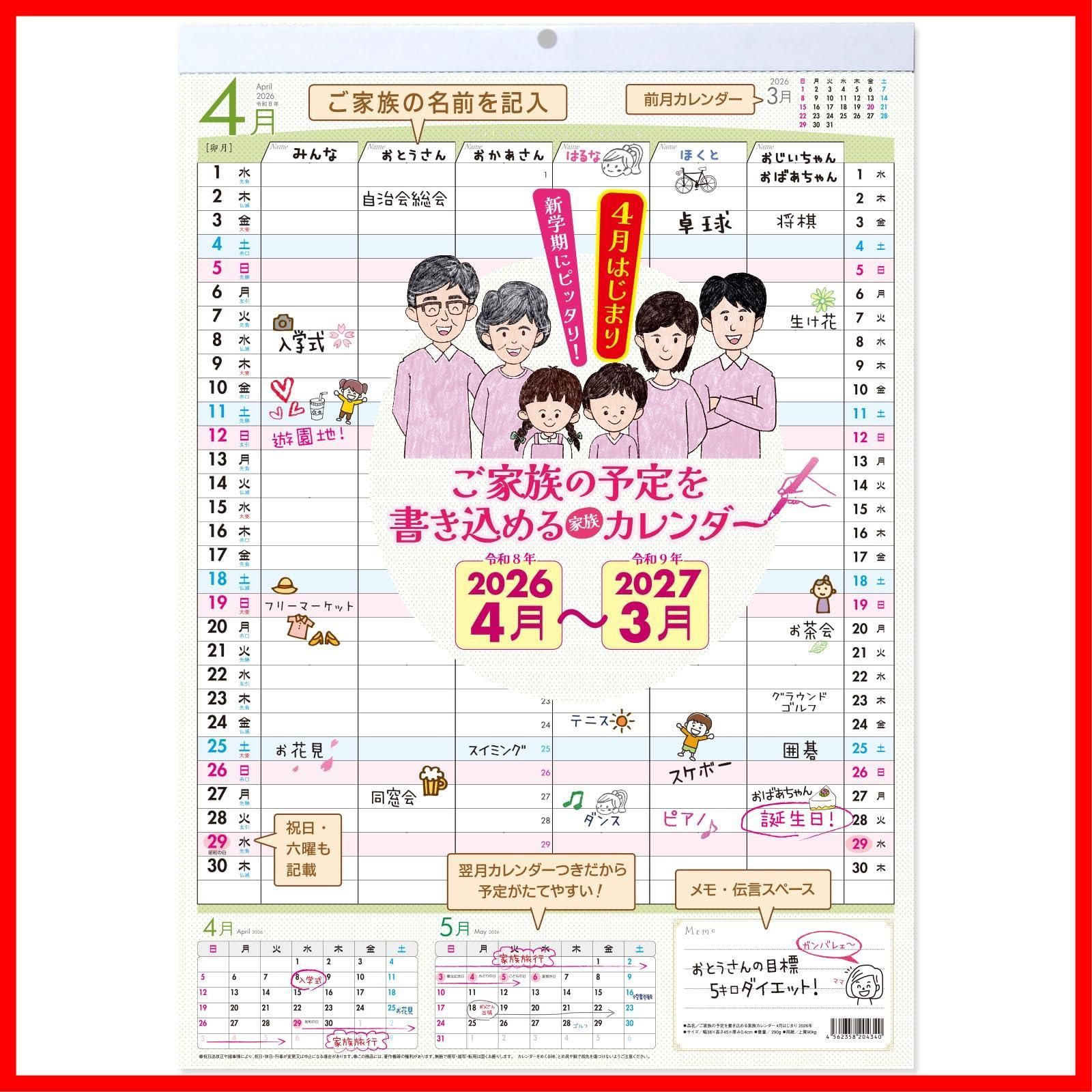 【4月から始まる新学期・新生活にぴったり!】 2026年4月始まり「家族カレンダー」で、新年度をスマートにスタート! 来年3月までたっぷり使えるので1年間の予定管理がぐっとラクに!