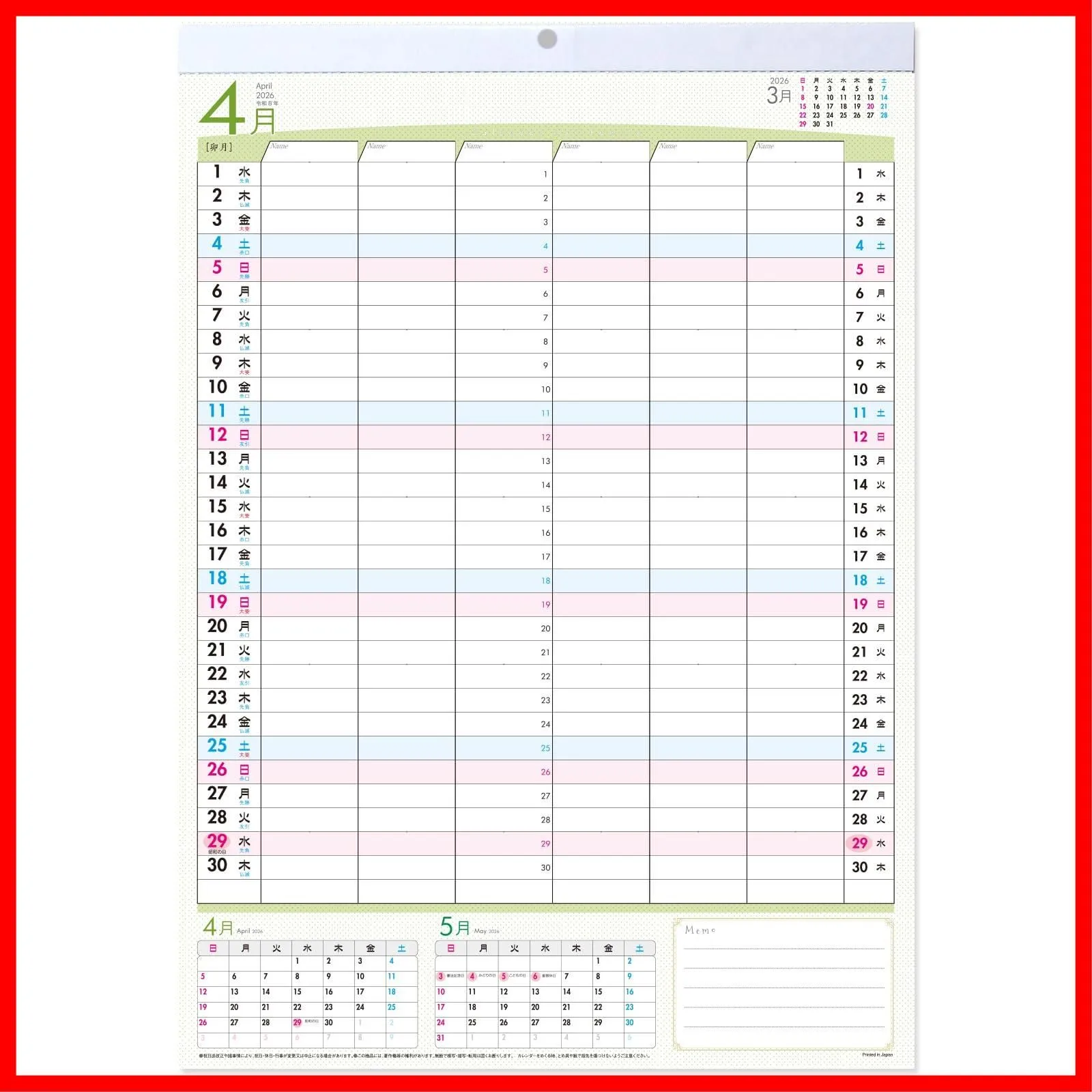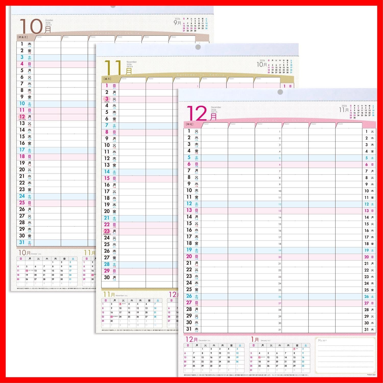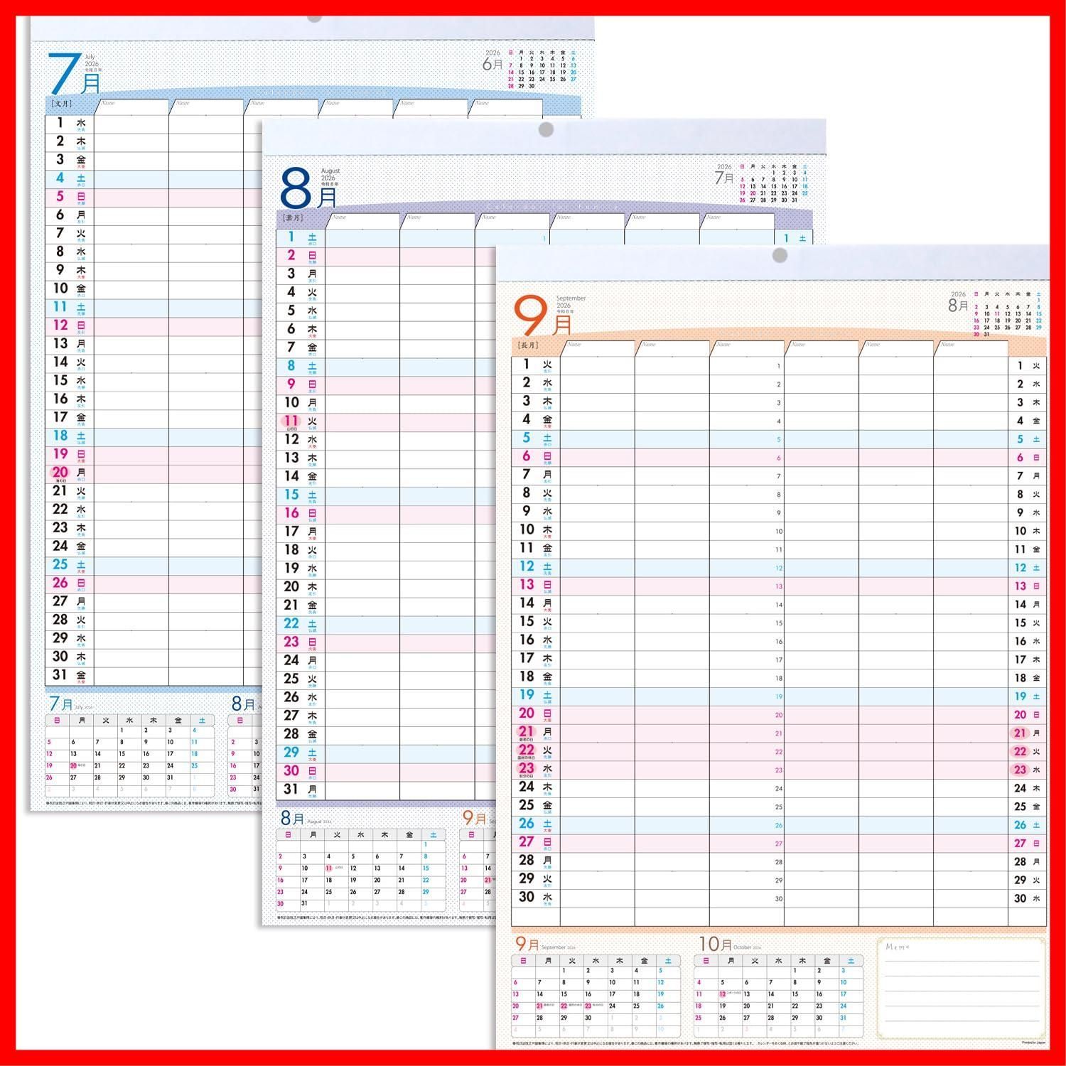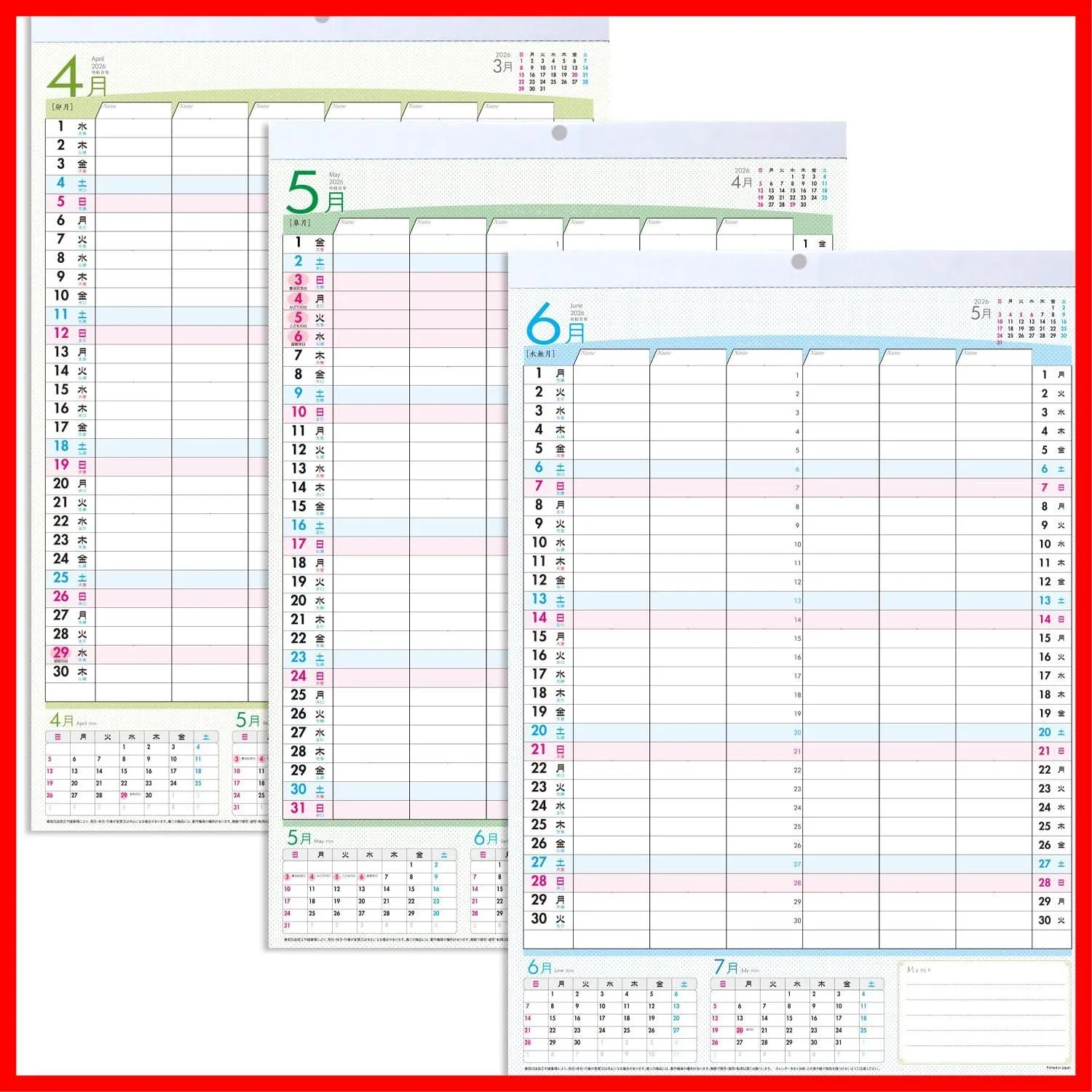 【便利な工夫がいっぱい】 ・切り取りやすいミシン目付き ・壁掛けピン止め穴つき ・上部に前月、下部に当月・翌月表示 → 長期の予定も立てやすい!