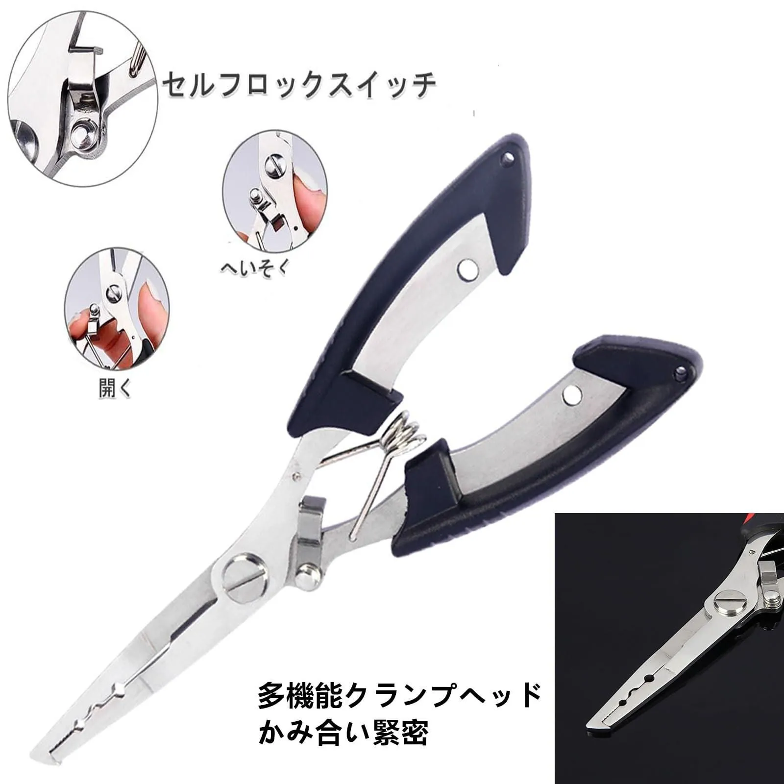 SensaBliss フィッシングプライヤー 釣りペンチ 釣りプライヤー 防錆 ステンレス 針外し フックリリーサー PEライン切れる フックはずし ロック機能付き 軽量 多機能 アウトドア 釣り用