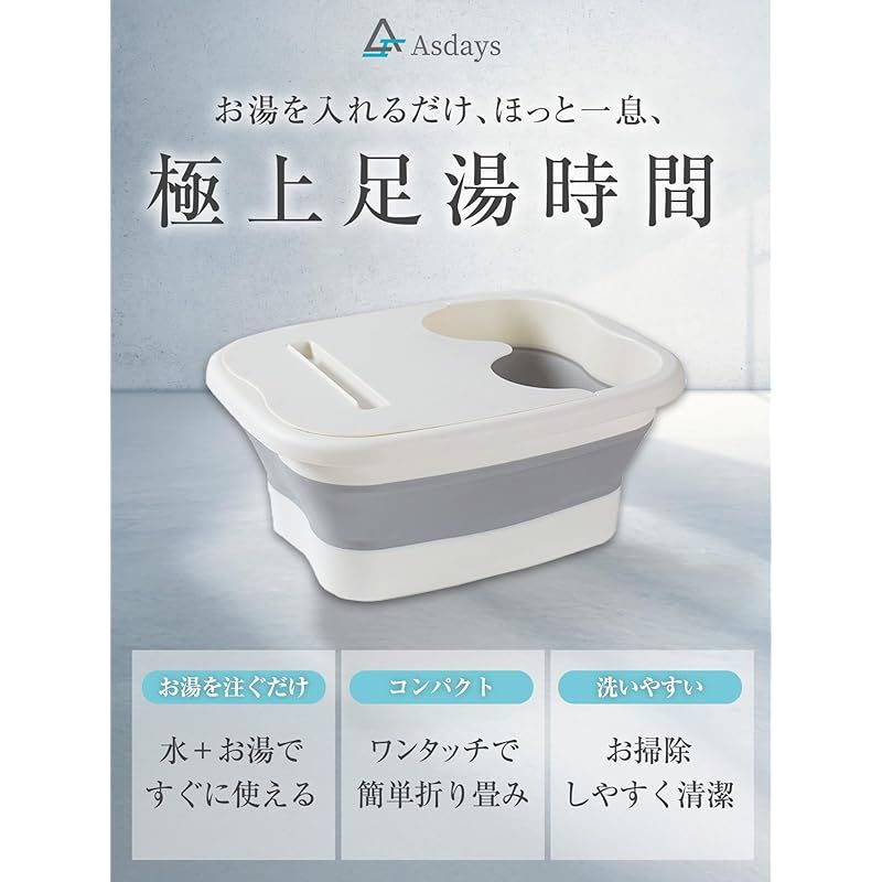 商品名:Asdays 足湯 大容量 折りたたみ 蓋付き フットバス 泡脚桶 足湯 持ち運び便利 折りたたみバケツ (ホワイト)