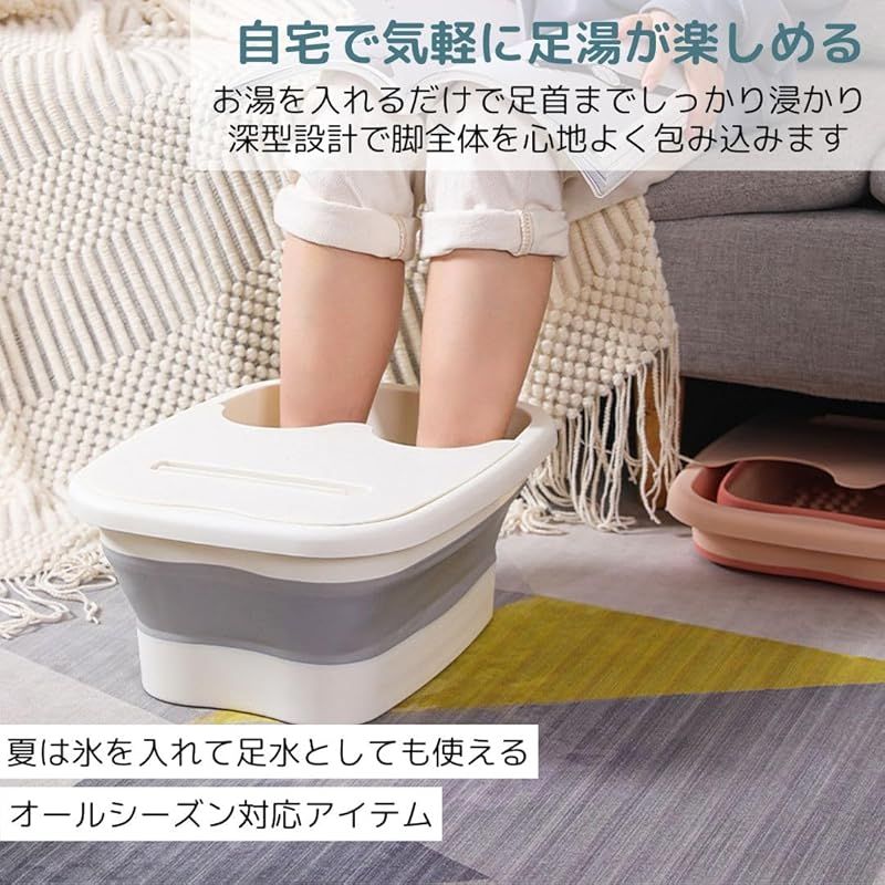 【いつでも足元リフレッシュ】自宅で気軽に足湯が楽しめる蓋付きフットバス。お湯を入れるだけで足首までしっかり浸かり、温かさを長時間キープします。深型設計で脚全体を心地よく包み、立ち仕事や長時間の疲れた足をしっかり癒せます。さらに、夏場は氷を入れて足水としても使えるので、季節に応じてリフレッシュできる便利なアイテムです。