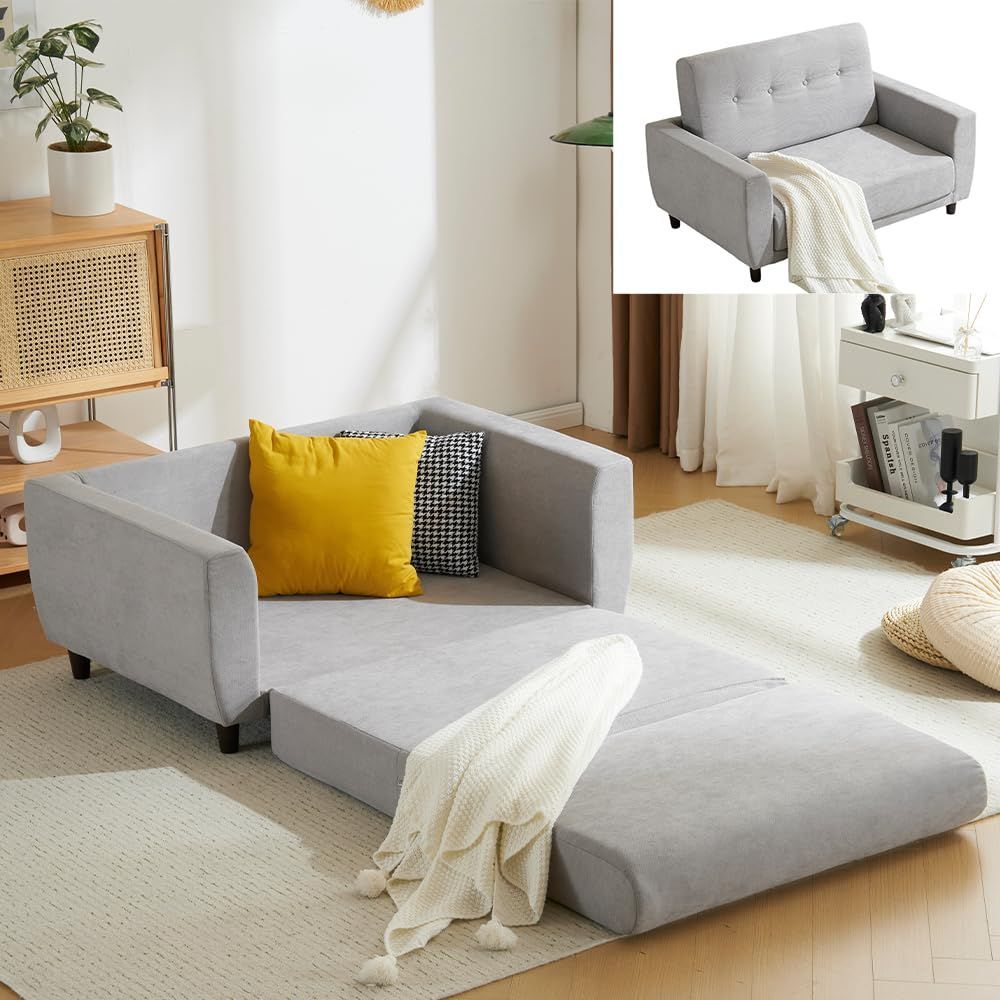 オーエスジェイ(OSJ) ソファーベッド ソファー2人掛け 肘付き3つ折り 折りたたみ コンパクト3つ折り 一人暮らし おしゃれ 脚付き北欧 ライトグレー
