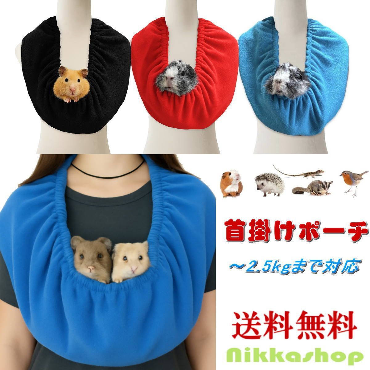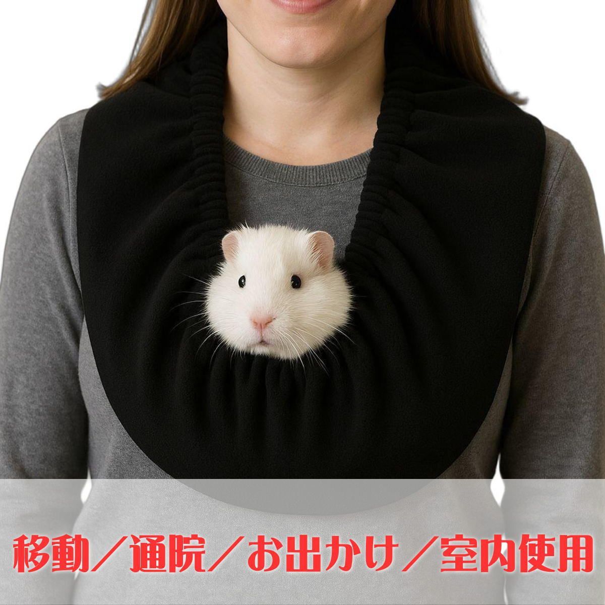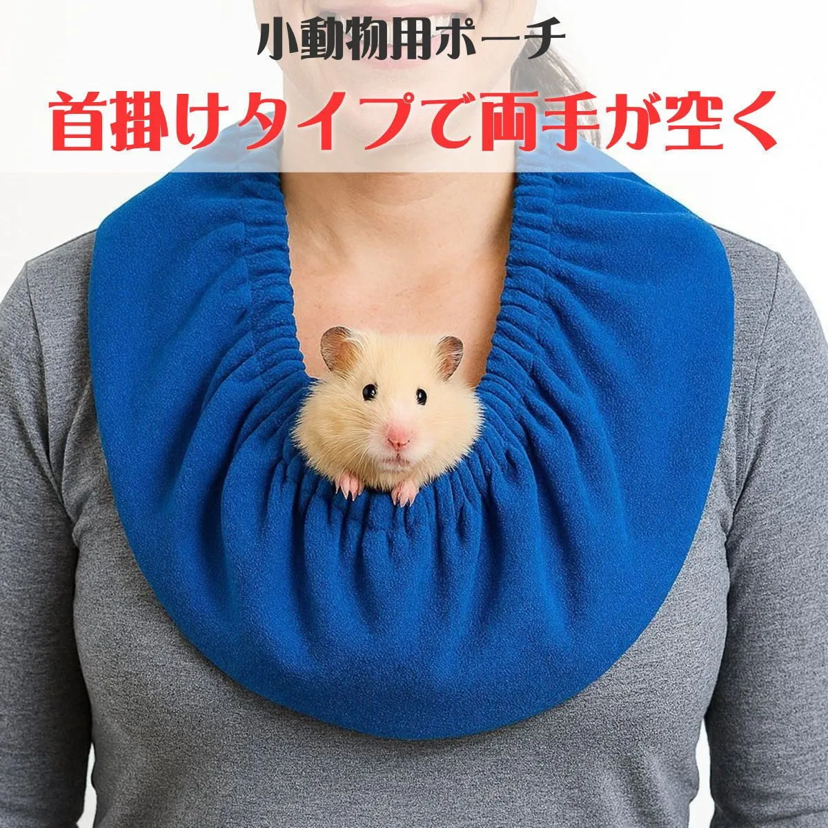 小動物とのお出かけや通院時に便利な、首掛けタイプの抱っこポーチです。