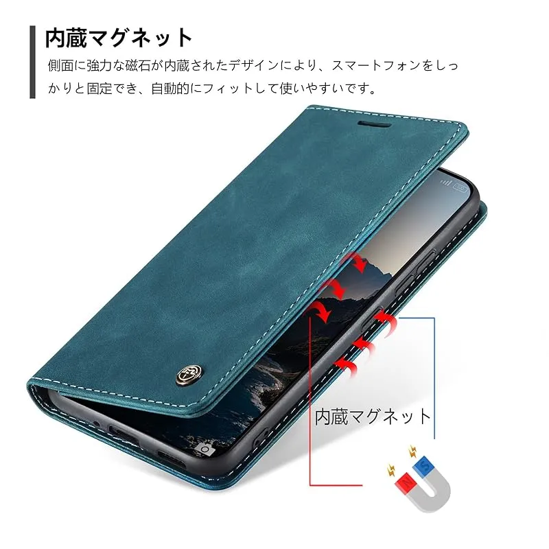 内蔵マグネット: スマホ手帳型ケースに使われているマグネット式の設計により、スマートフォンをしっかり固定できます、開閉簡単。