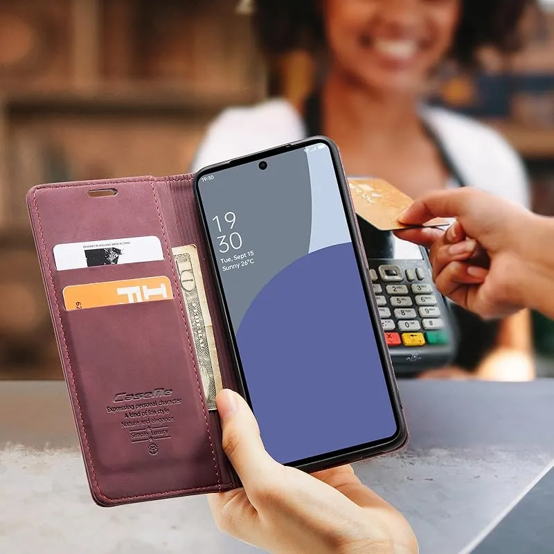 [強磁性と収納機能] AQUOS Sense 9 5G対応手帳型ケースの内側にはカードスロットが2つ、内ポケットが1つあります。少量の現金とカード類2枚を携帯することができ、通勤や通学に重いバッグを背負う必要はありません。 AQUOS Sense 9 5G対応財布型ケース名刺はもちろん、紙幣や交通系ICカード、クレジットカードなども収納可能です。マグネットが強く、カード2枚入れて閉められないことを心配する必要がありません。簡単に開け閉めができるから、片手で開きたい方にもとても便利です。毎日の旅行をとても楽にしてくれます。