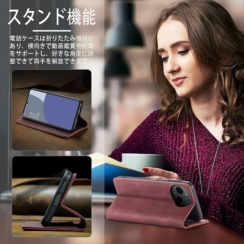[横置きスタンド機能] AQUOS Sense 9 5G対応ケースは横置きスタンド機能が付き、好きな角度を調節です、両手が解放されます。横置きで支えることができる電話があれば、いつでもビデオやテレビを見ることができ、カリグラフィーを学ぶ、料理の勉強、オフィスワークなど。安心してお使いいただけます。