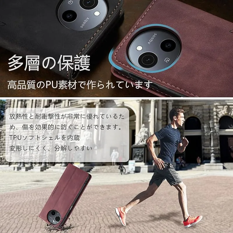 [耐衝撃] AQUOS Sense 9 5Gカバー外部のPUレザーと内部の耐衝撃性TPU素材という、スタイリッシュな外観、放熱性、耐衝撃性に優れています、すり傷防止や防塵に優れます。内部は衝撃吸収性に優れたTPU素材を採用して、落下時の衝撃を効率よく吸収するようにケースの各コーナー内側が設計されています、電話の総合的な保護。スマホ本体への損傷の心配ありません.にカメラレンズ保護構造でスマホ本体を傷からしっかり保護してくれます。