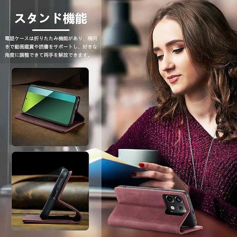 [横置きスタンド機能] Xiaomi Redmi Note 13 Pro 5G対応ケースは横置きスタンド機能が付き、好きな角度を調節です、両手が解放されます。横置きで支えることができる電話があれば、いつでもビデオやテレビを見ることができ、カリグラフィーを学ぶ、料理の勉強、オフィスワークなど。安心してお使いいただけます。