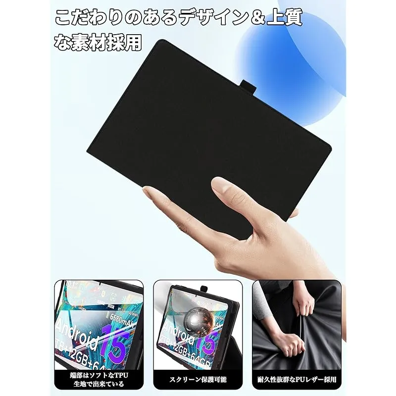 【上質PU素材採用】カバー表面は手触りが良く高級感のあふれる耐久性に優れた高級PUレザーで、バックケースは耐衝撃性の高く頑丈なTPU+PC素材を採用しており、裏地材質は液晶表面に優しいマイクロファイバーの仕上がりで、タブレット本体をやわらかく包み込みながら、不意による落下の衝撃から緩和できて、タブレットに最高の保護力を提供してくれます。