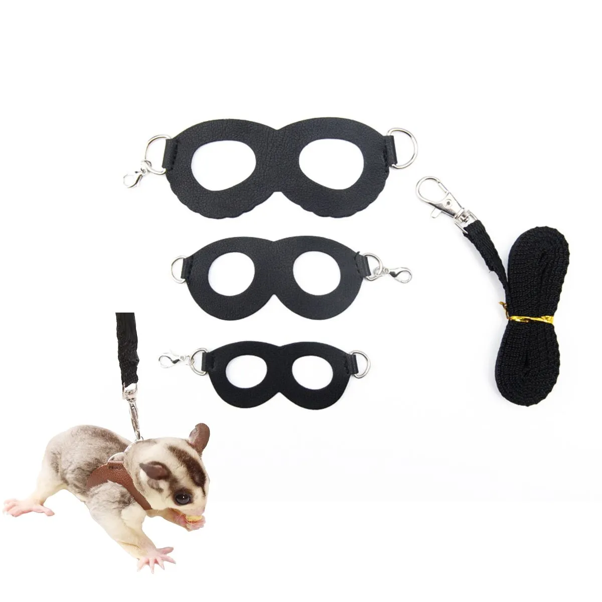 小動物 ハーネスリードセット 3サイズセット 調節可能 爬虫類 フェレット ハムスター お散歩 お出かけ用 ブラック