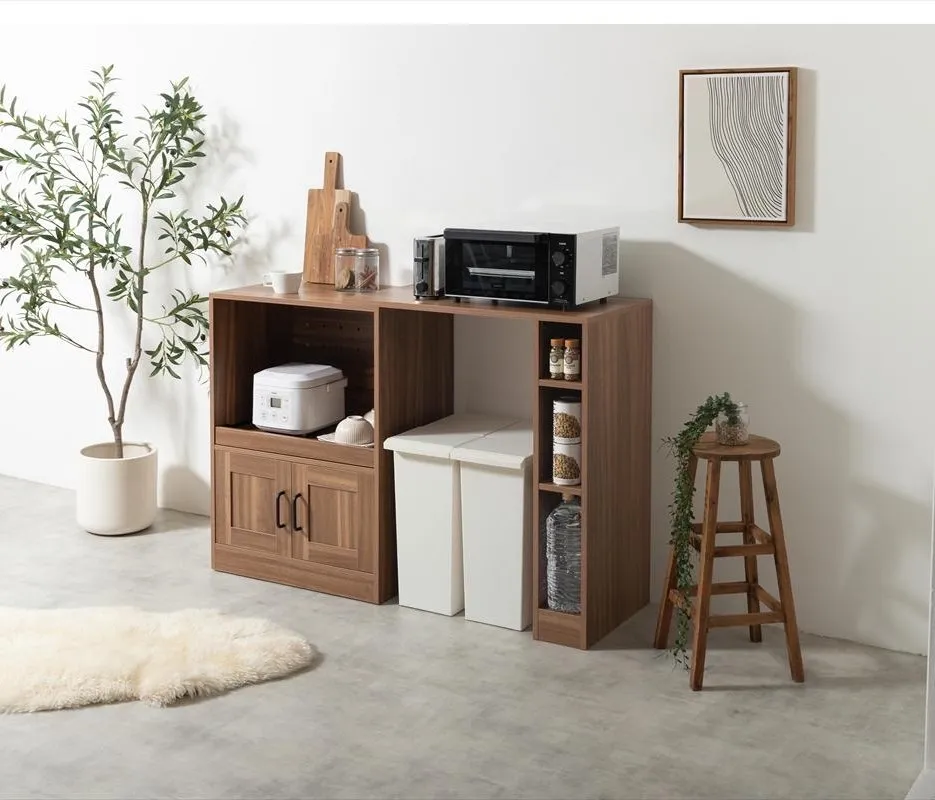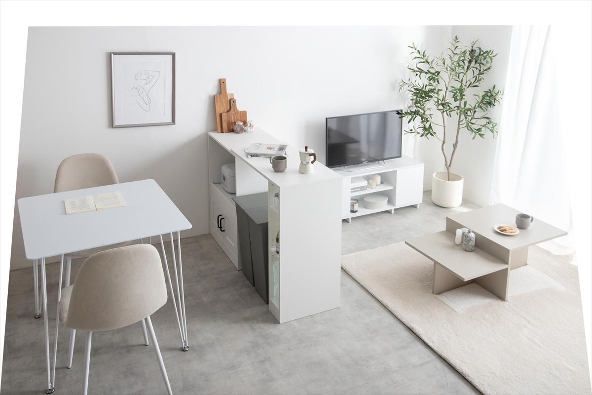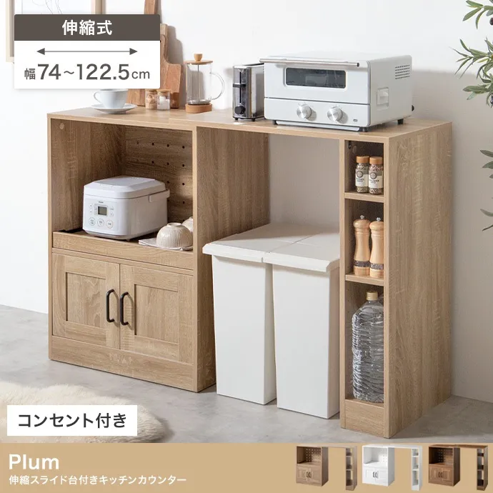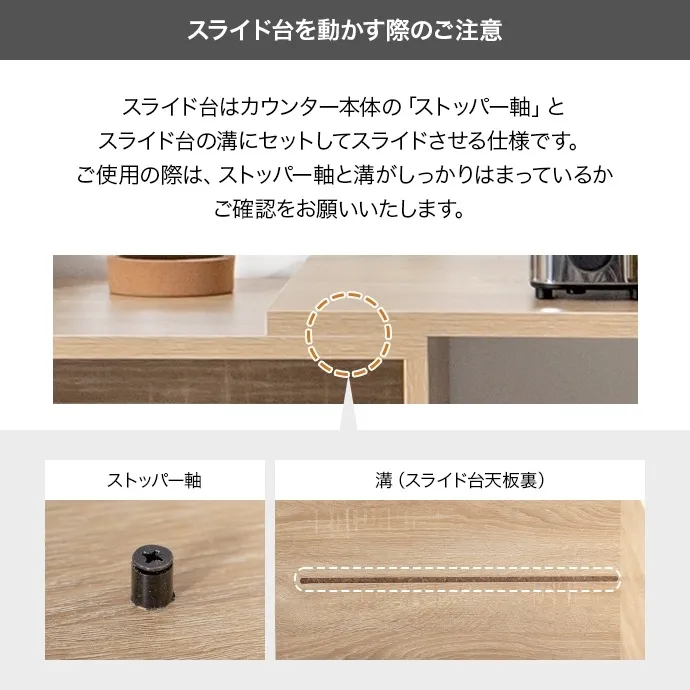 置く場所に合わせて、天板の広さを変えられる伸縮スライド台付きキッチンカウンター