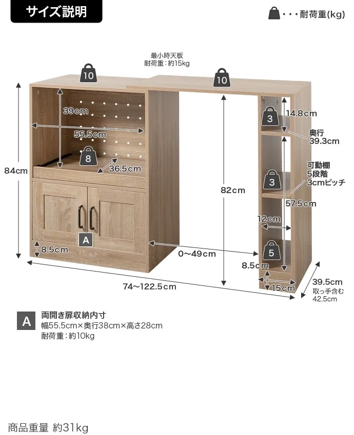 幅74~122.5cm×奥行39.5cm×高さ84cm