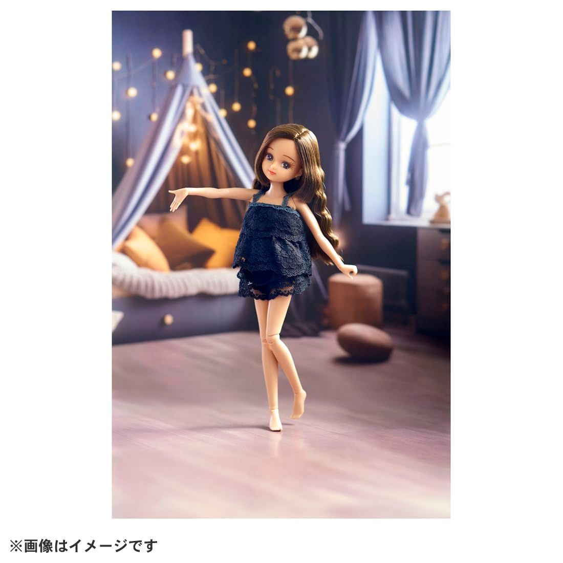 「ダリア」は黒いウェーブへアーに小麦色肌が印象的な、黒いルームウェアスタイルのリカちゃんです。