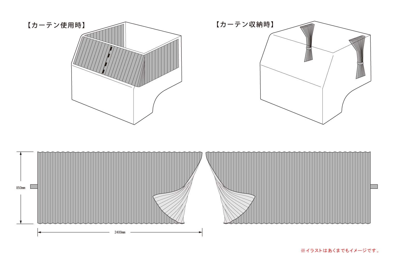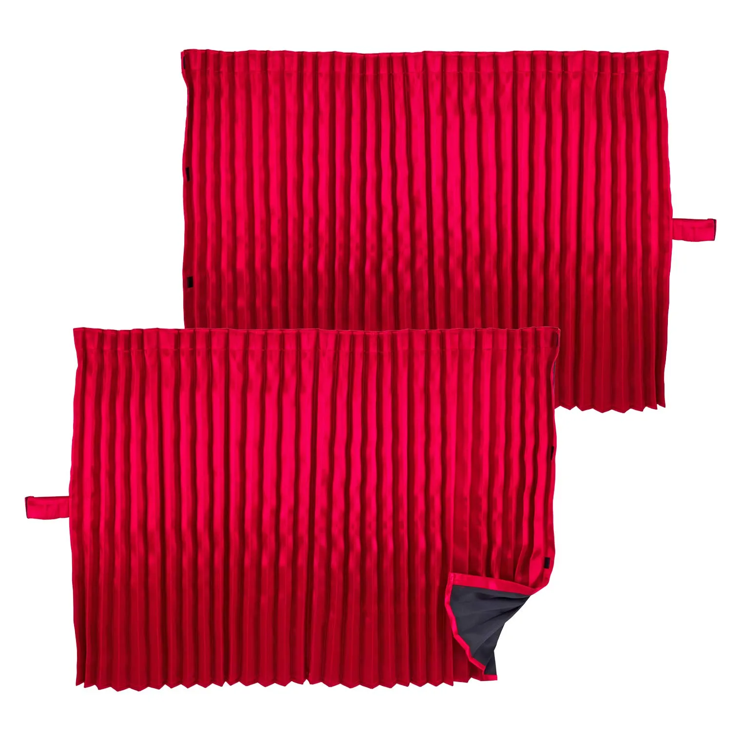 表面はカラーの生地、室内側になる裏面はブラックの生地でボンディング加工が施された高級感のあるカーテンです。 最高級サテンの暗幕カーテン生地を使用しており、遮光率99.99%以上の試験結果を得た1級遮光のカーテンです。 また、防炎性能も兼ね備えている生地なので車検にも対応しており安心です! サイズはフリーサイズでカーテンフックも付属しております。