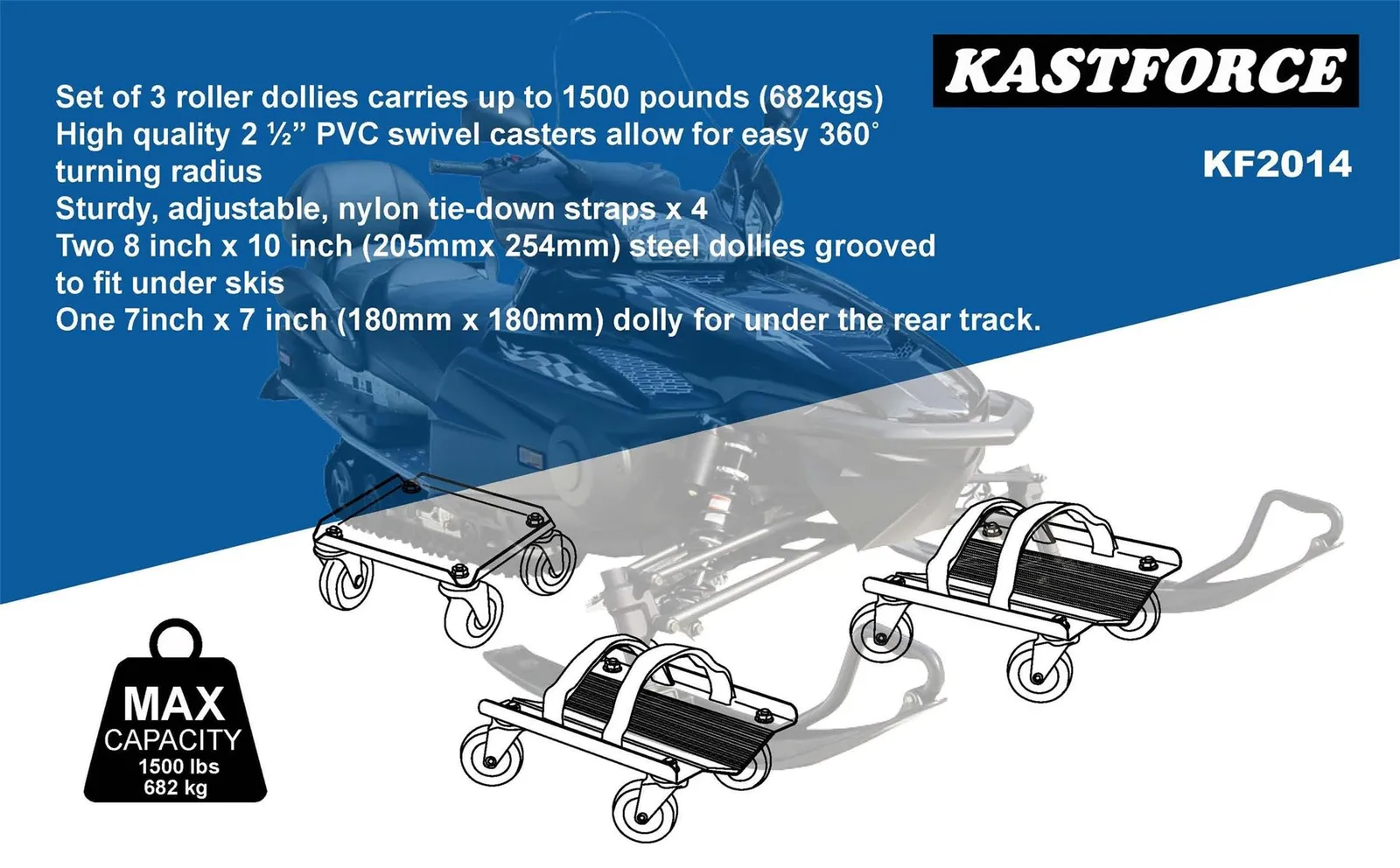 【スノーモービルの移動が楽になる】スノーモービルや除雪機をドライブウェイからガレージへ移動する際に便利なドリー3点セットです。