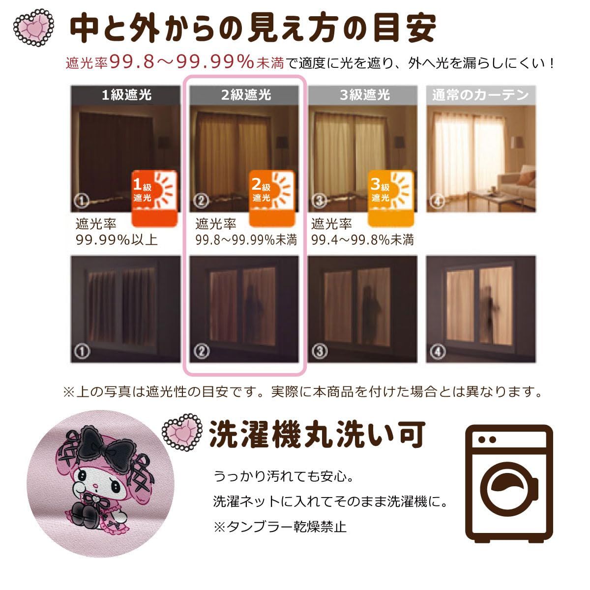 遮光機能付きでプライバシーもしっかり守ってくれます。丸洗いOKなので万が一汚れてもお手入れ簡単♪