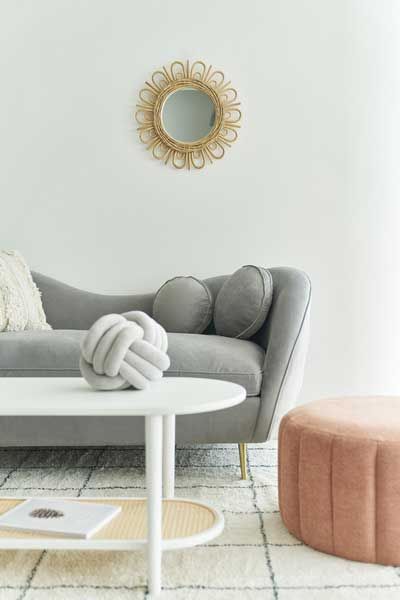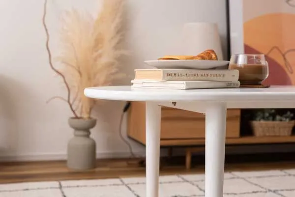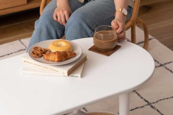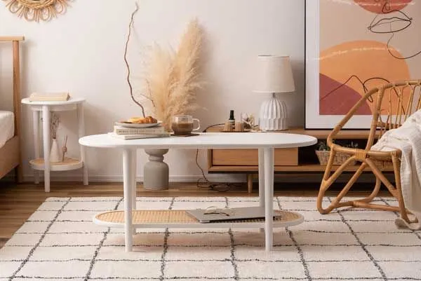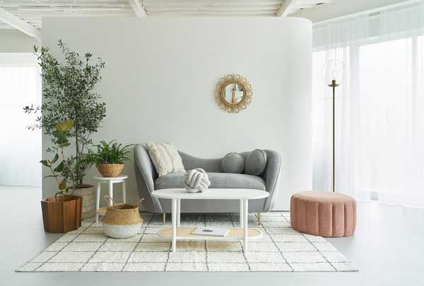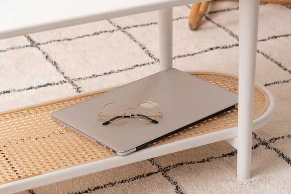 ●ポリプロピレン素材のラタン調デザインが目を引く丸みを帯びたフォルムのテーブルは、クールなイメージにもガーリーなイメージにもマッチするデザイン。