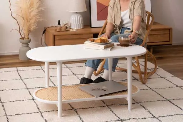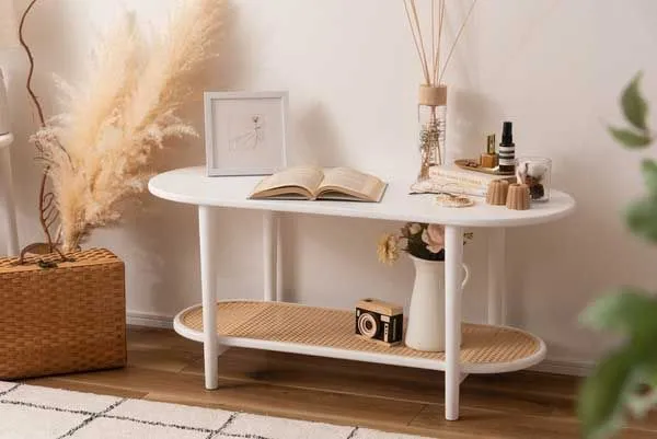 個性的 定番 おしゃれ こだわり デザイン お洒落 リーズナブル お買い得 お値打ち シンプル カジュアル レトロモダン ディスプレイ 台 可愛い かわいい ナチュラル 楕円形 籐風 人工ラタン リゾート感 和室 洋室 和洋 木製 ウッド 白色 アジアン テレビボード リビングテーブル フロアテーブル