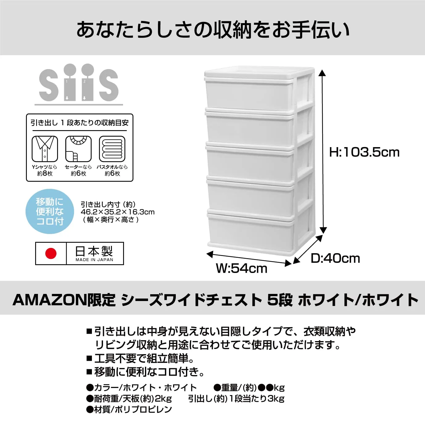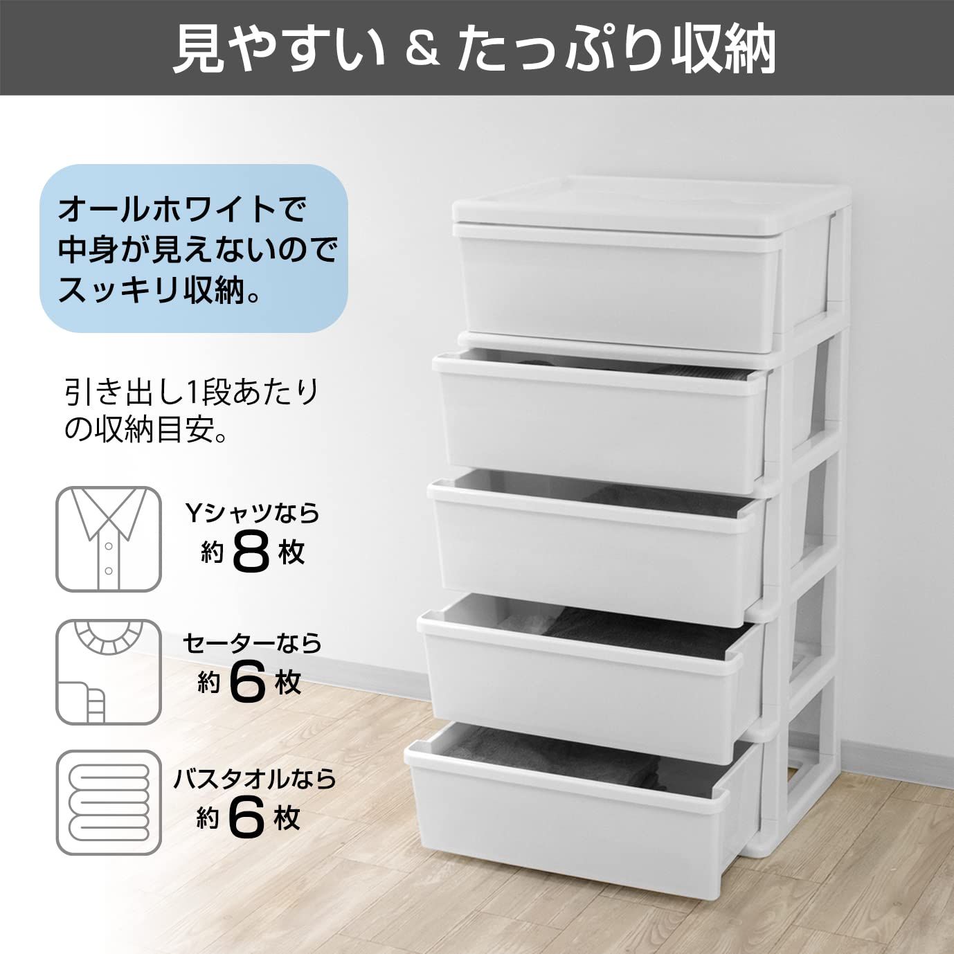 【 限定】ジェーイージェーアステージ JEJアステージ 収納チェスト シーズワイド 5段 ホワイト/ホワイト 日本製 簡単組み立て 幅54.0×奥行40.0×高さ103.5cm
