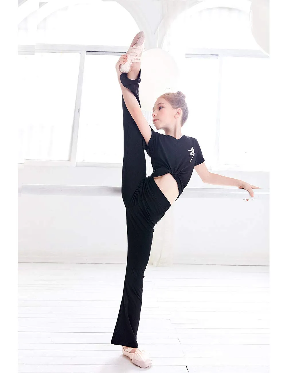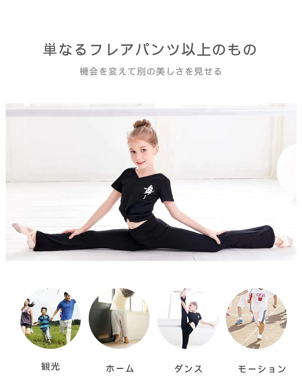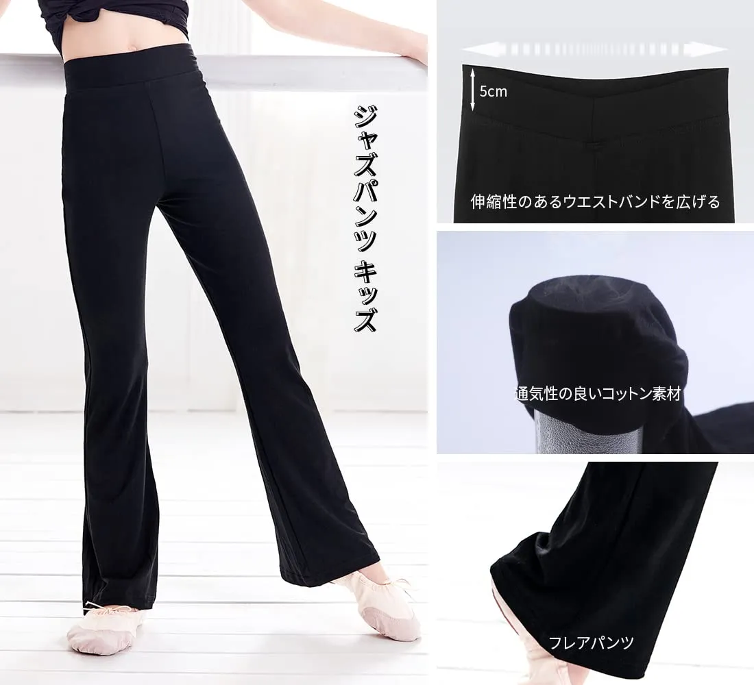 Daydance キッズ ジュニア バレエパンツ ダンス フレキシブル レギンス 普段着 フレアダンスパンツ ブラック 身長95-160cm