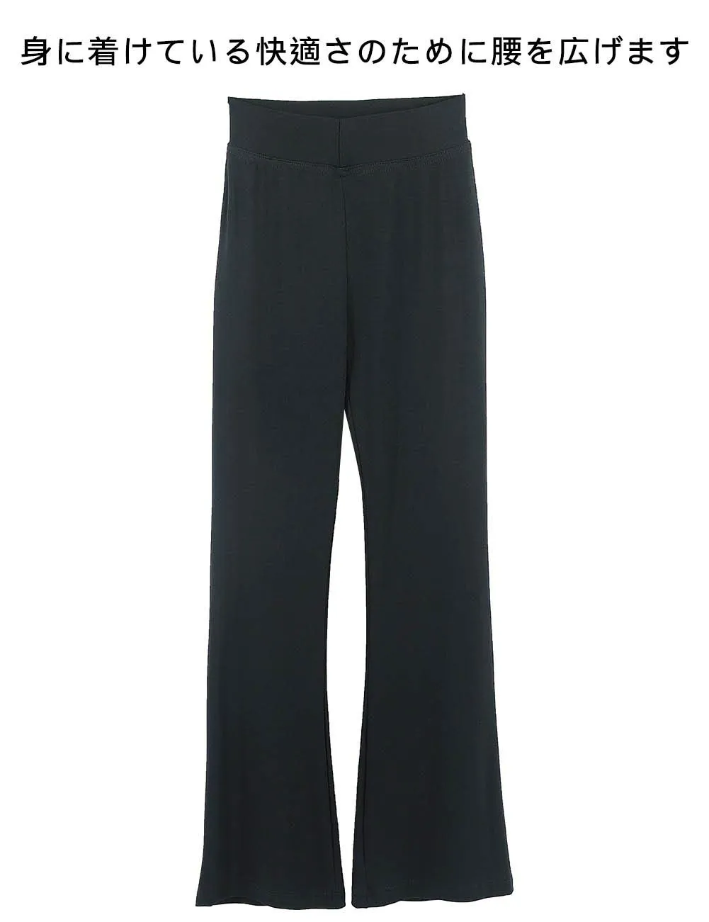 【素晴らしい品質】ハイウエストフレアパンツ子供用は厚手の生地を使用しており、無地の黒のフレアパンツは見えません。 素材には十分な伸縮性があり、一日中着用しても形状を保ちます。