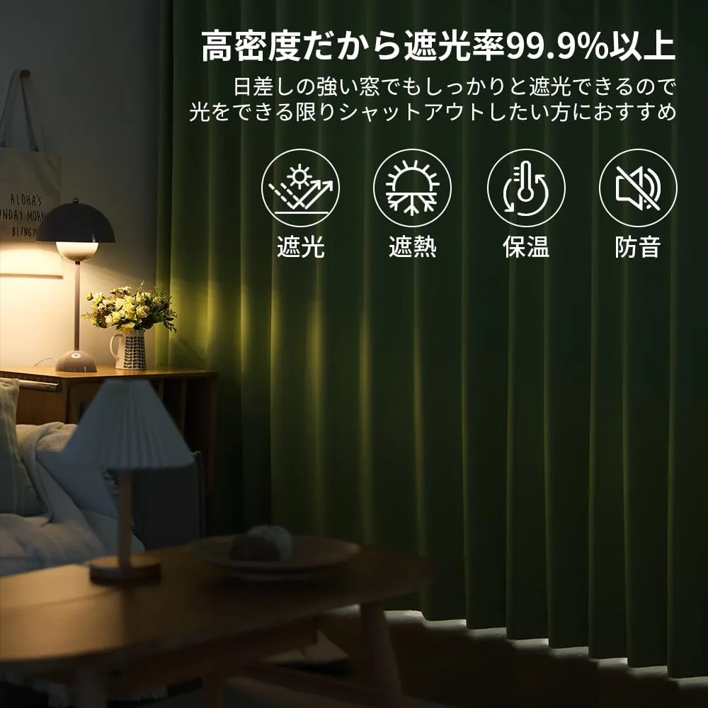 【プライバシーを守る】室内の光を外に漏れにくくする効果があるだけではなく、夜に部屋の明かりを付けている時でも外から人影が見えづらく、プライバシーを守ることができます。女性の一人暮らしでもこのカーテンなら安心感を得られる。