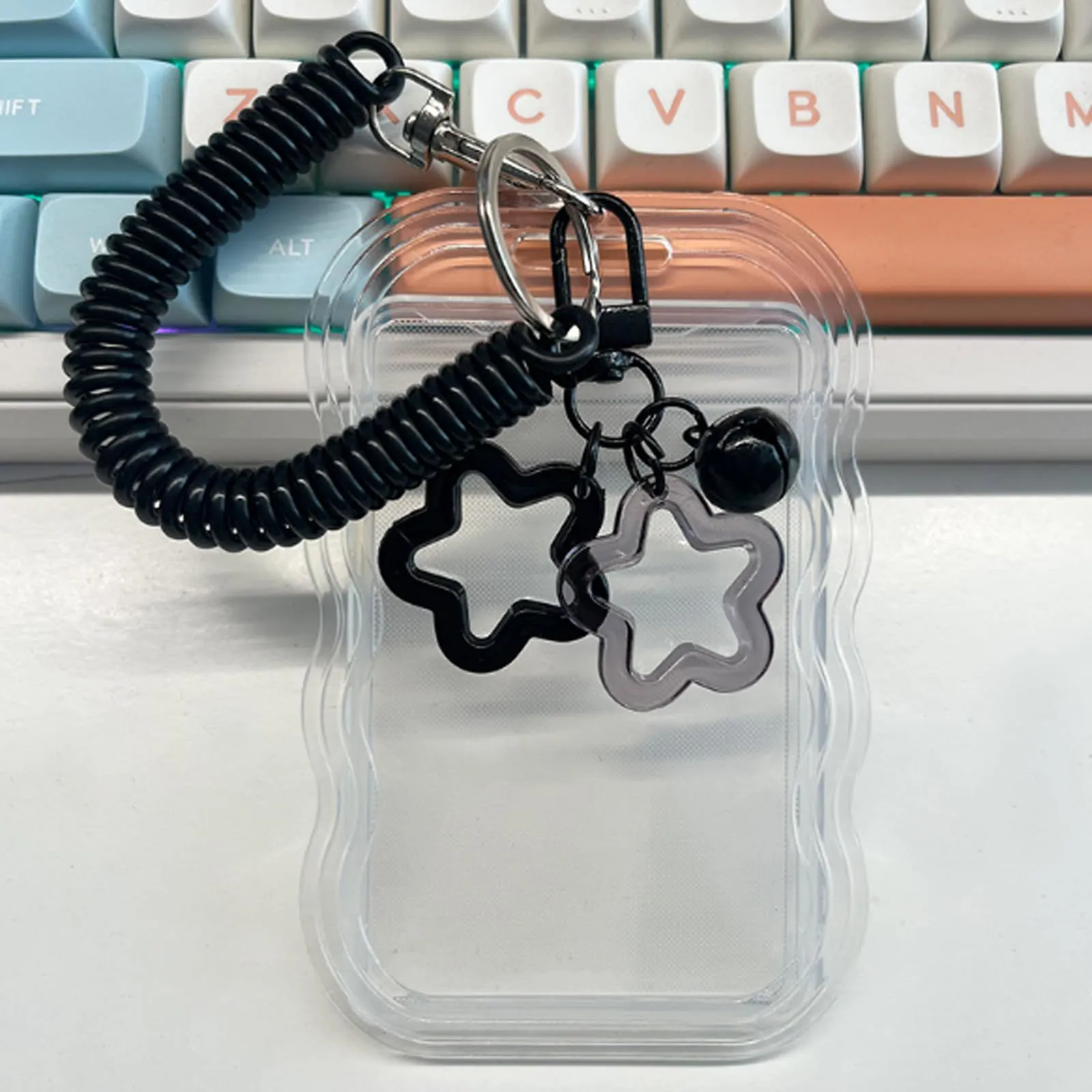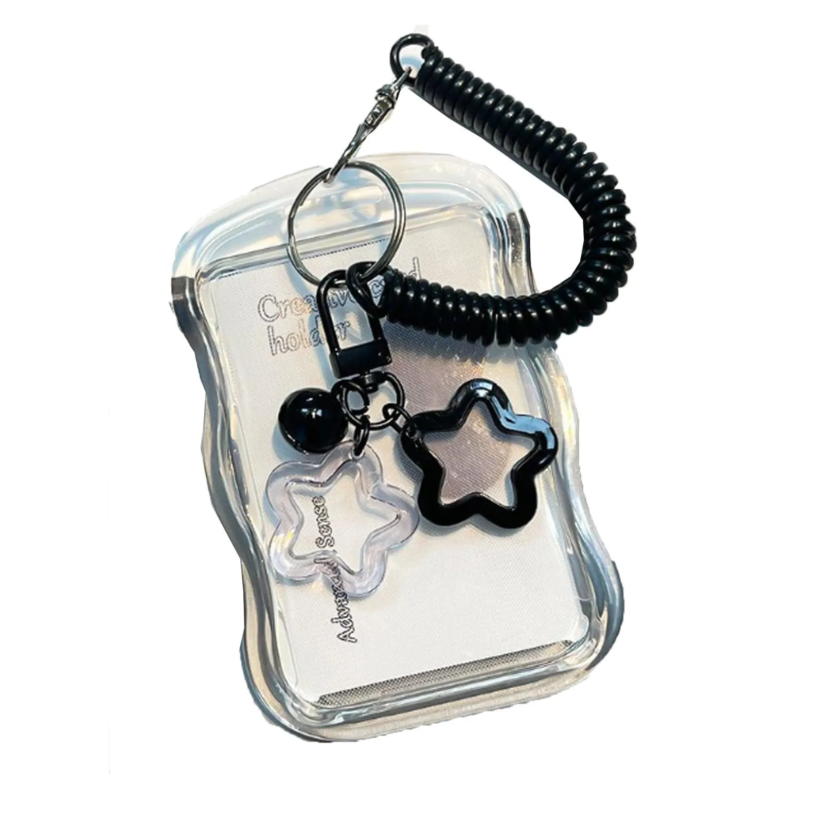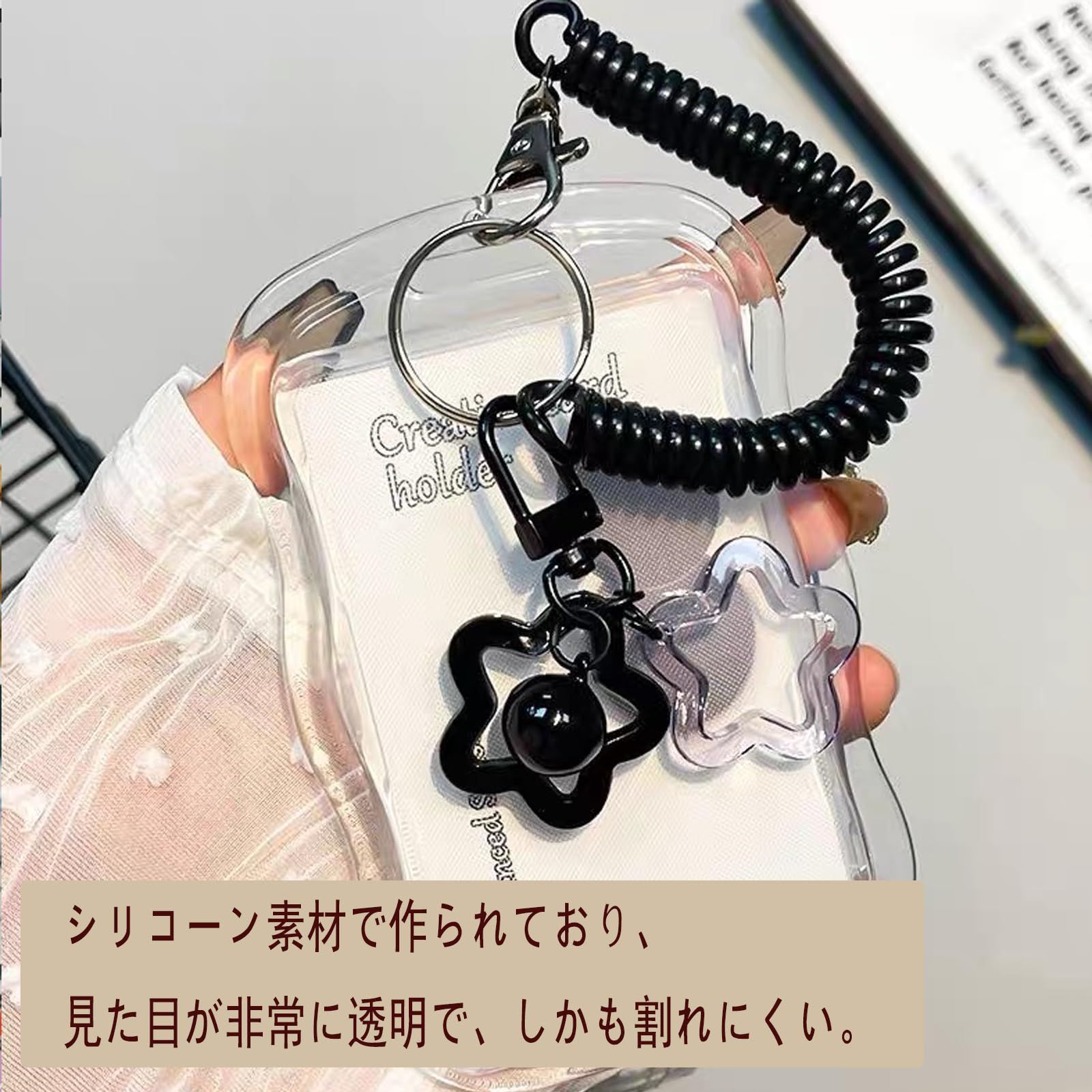 パスケース 定期入れ カードケース ストラップ付 ネームホルダー カードケース クリア窓 通勤 通学 かわいい キーホルダ付き ペンダント付き シリコーン トレカケース トレカホルダー 社員証 ローダー カード 収納 定期入れ ID ICカード 透明 女の子 高校生 学生 通勤 通学 (黒い星)