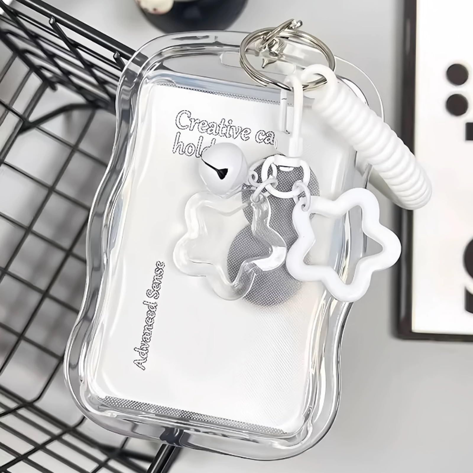 【高品質素材】良質なABSプラスチック素材で作られており、丈夫で耐久性に優れています。透明なケースとを組み合わせたデザインは、カードをかわいくおしゃれに見せます!また、ストラップが付き、紛失しやすいカードの持ち歩きも安心!
