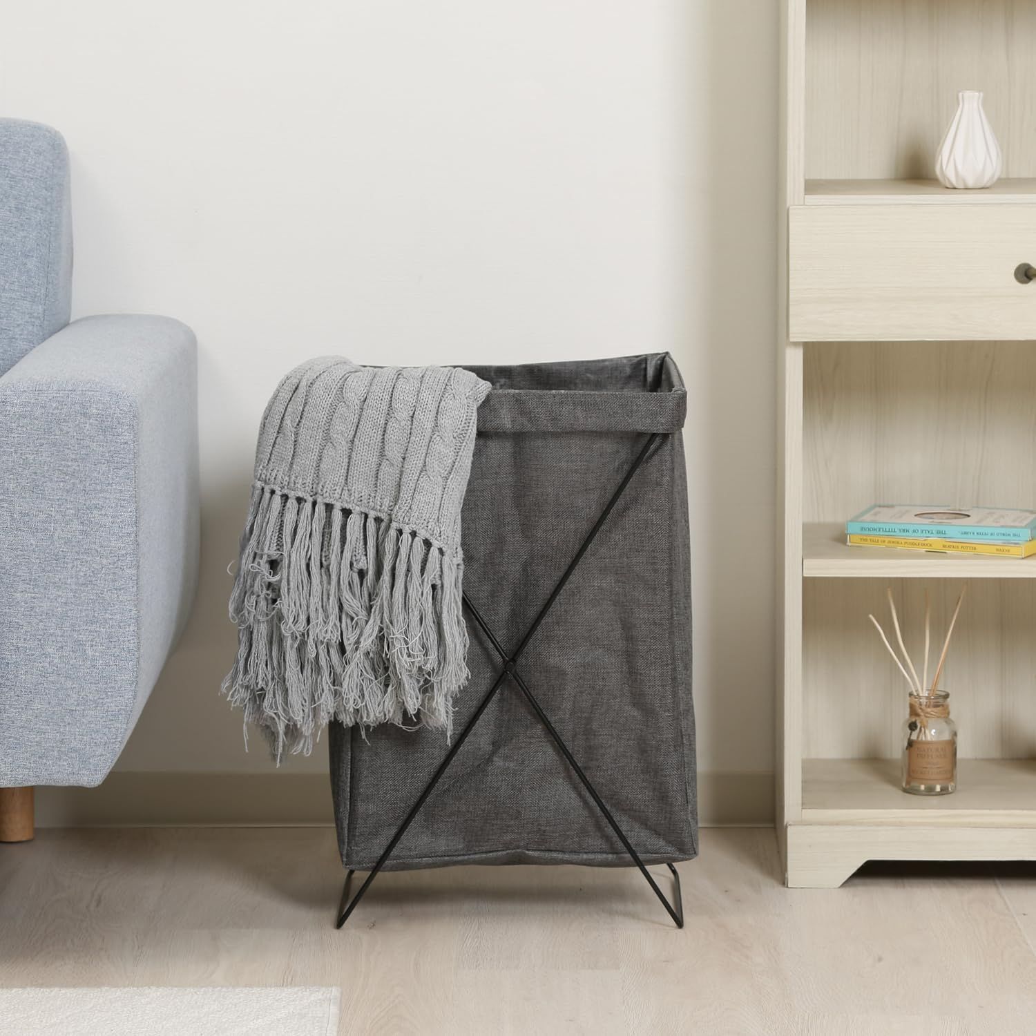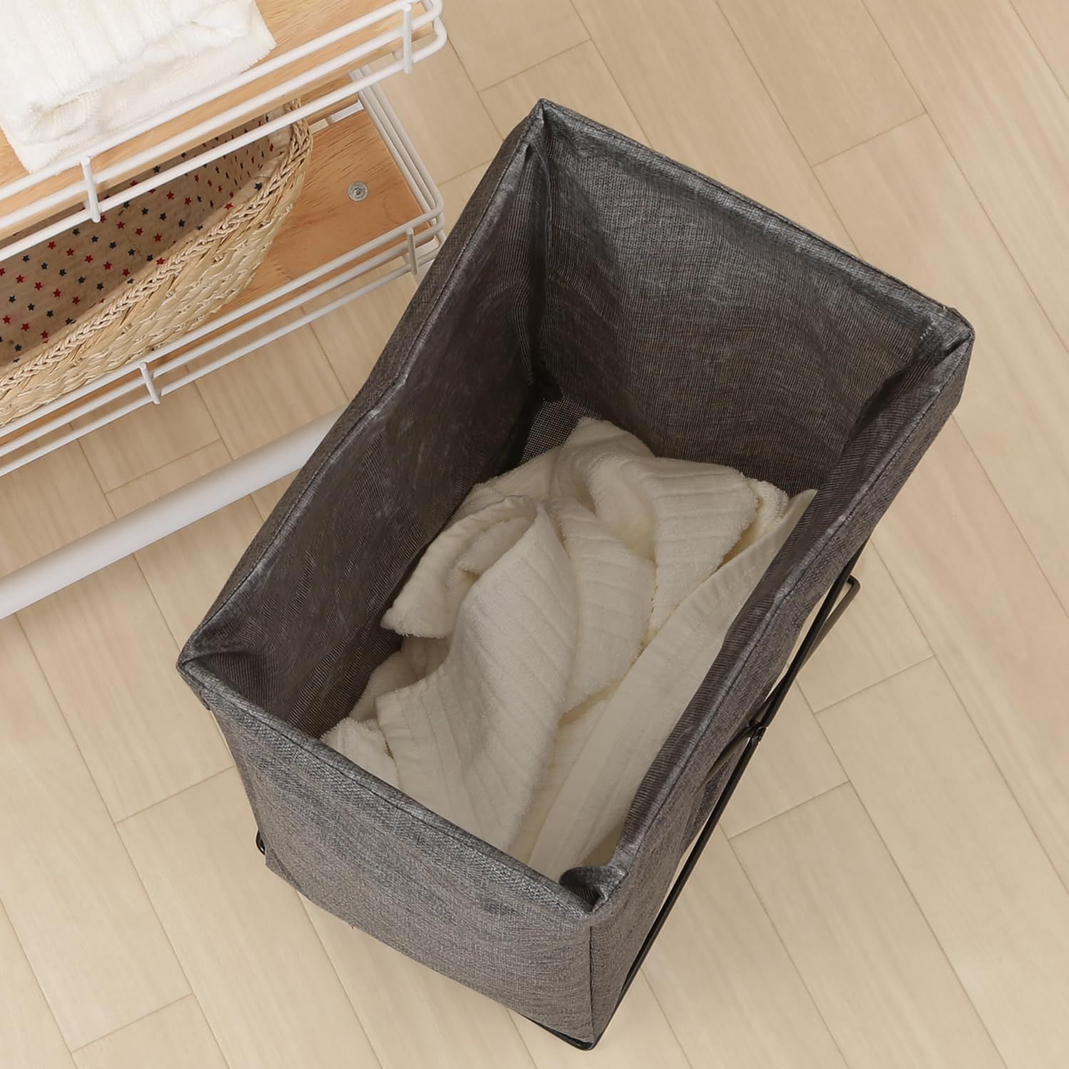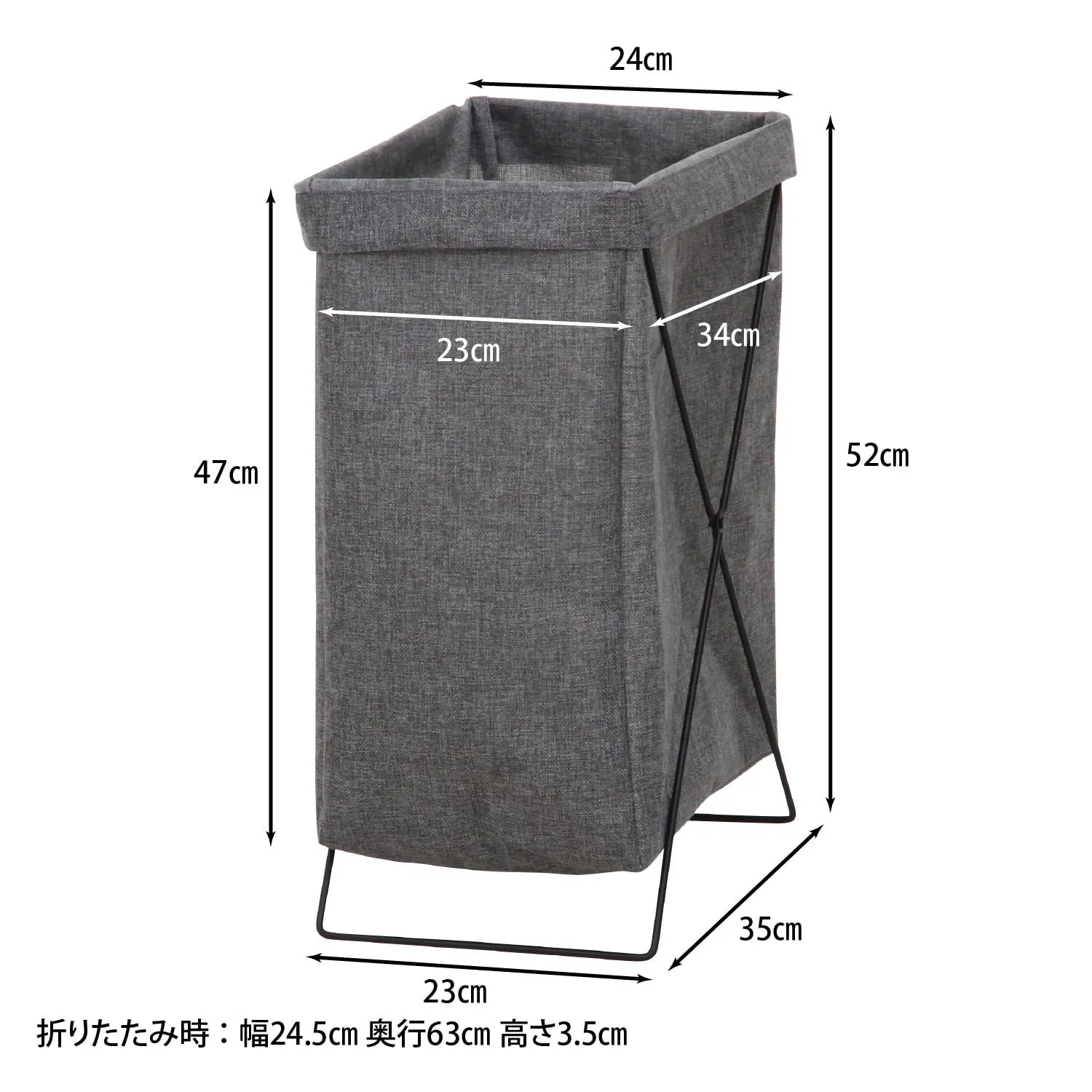 不二貿易 マルチ収納ボックス ランドリーボックス 縦型 幅24×奥行35×高さ52cm グレー ファブリック スチールフレーム 内側撥水加工 内容量30L 31510