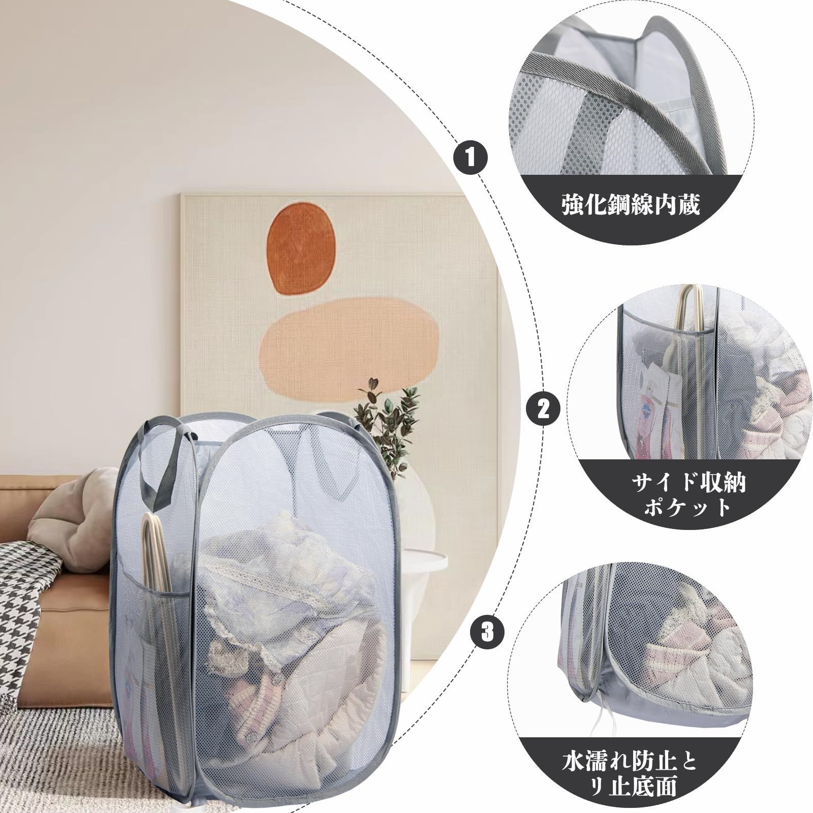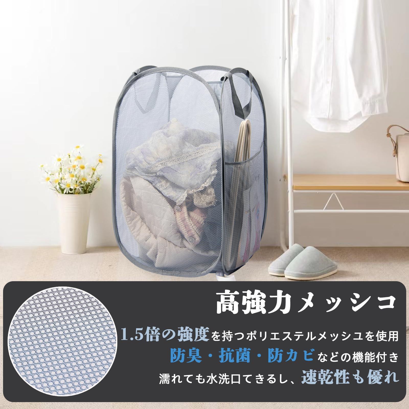 【通気性、耐久性のある素材】- 洗濯かごは、ポリエステル生地、通気性のあるメッシュ、そして亜鉛メッキ鋼線でできています、長持ちし、頑丈で耐久性があります。速乾性に優れ、防臭、抗菌、防カビなどの機能が。