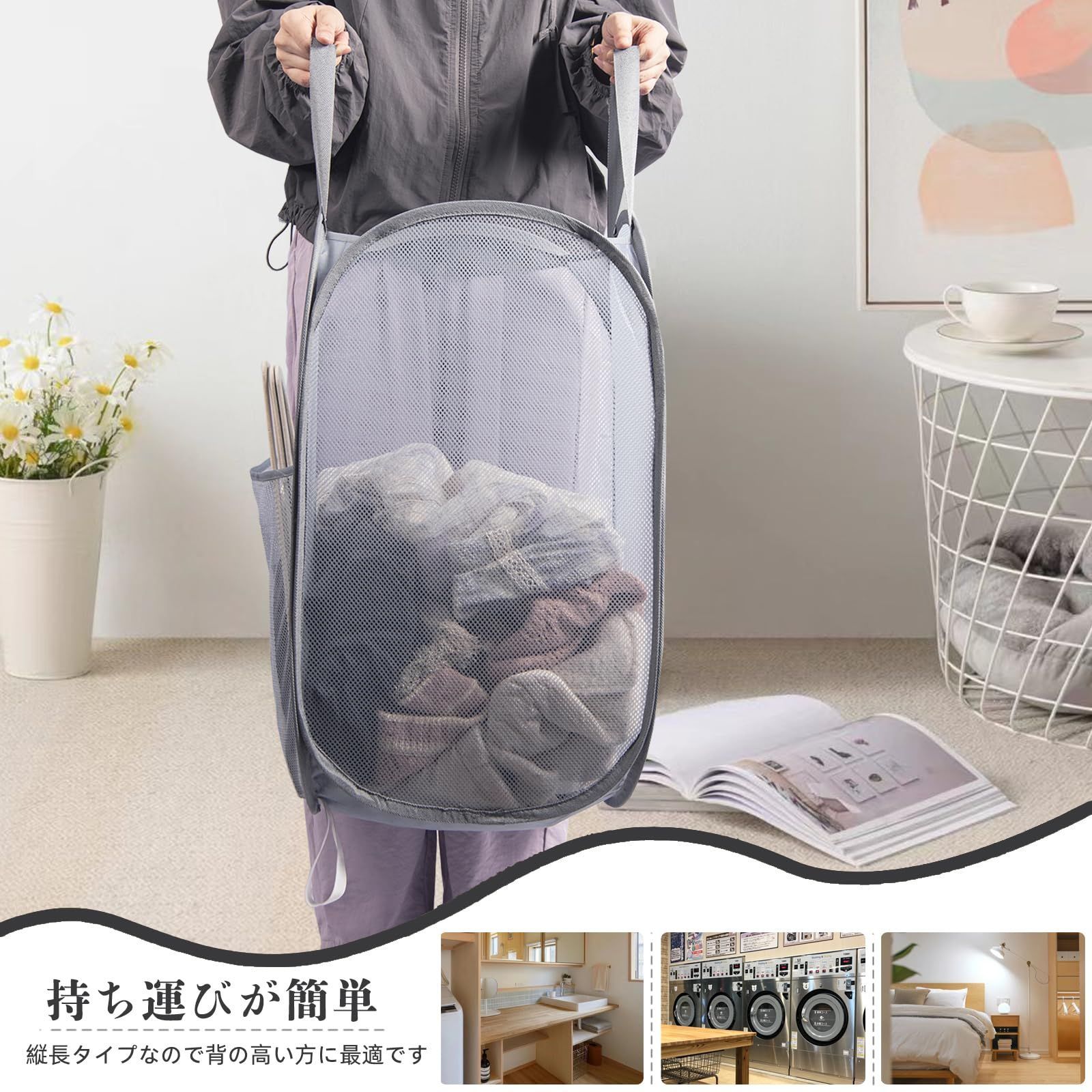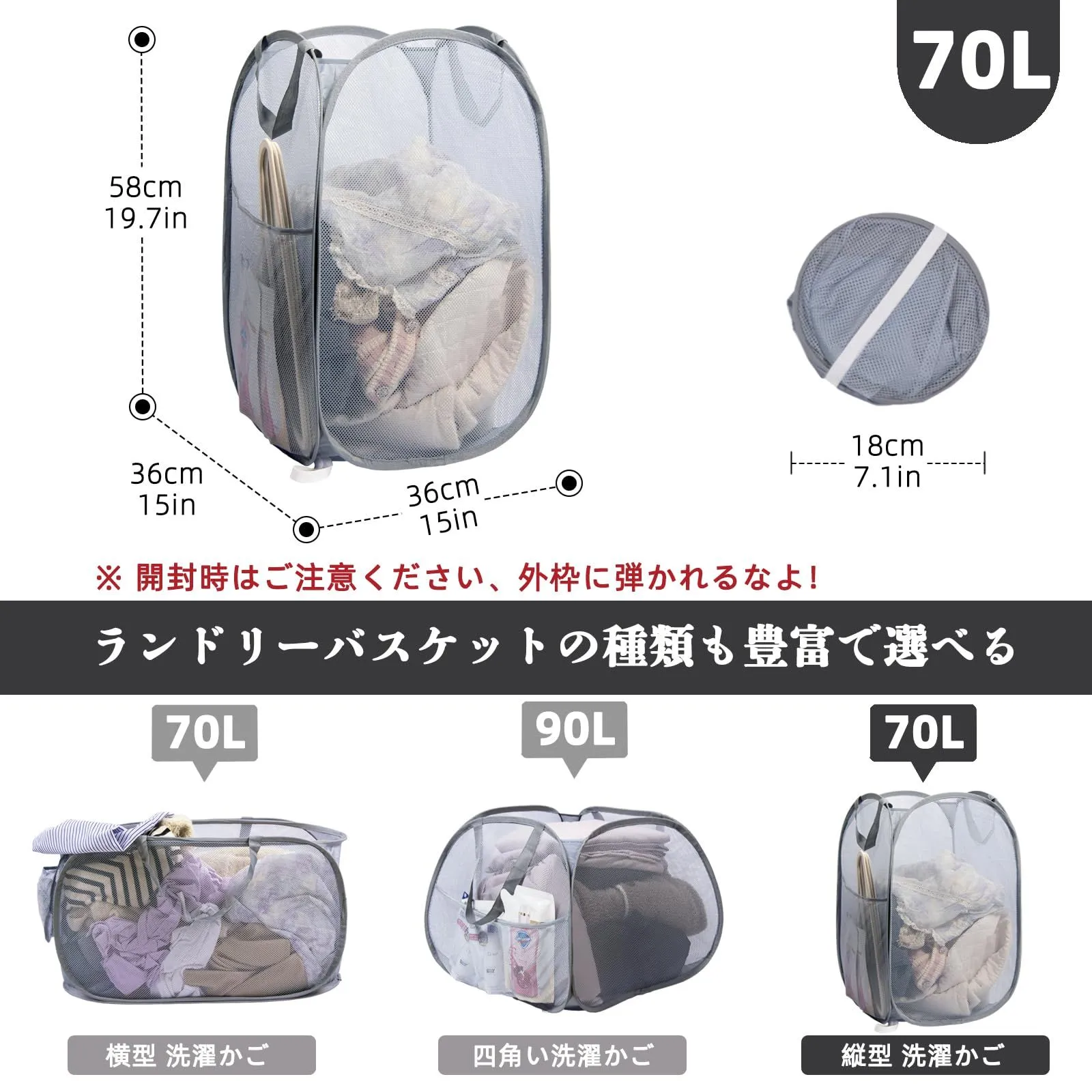 洗濯カゴ 洗濯かご 折りたたみ 縦型 ランドリーバスケット 70L 大容量 メッシュ ランドリーバッグ ランドリーボックス 洗濯籠 洗濯物入れ 収納 超軽量 旅行 持ち運び可能