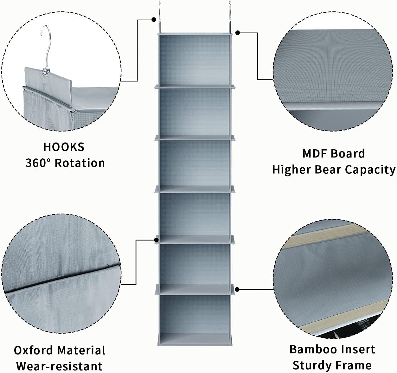 YOUDENOVA 吊り下げ収納 衣類ラック 収納 クローゼット 折りたたみ 旅行 便利グッズ 水洗い可能 防湿防カビ 洋服収納 衣類収納 帽子収納 (グレー、4段)
