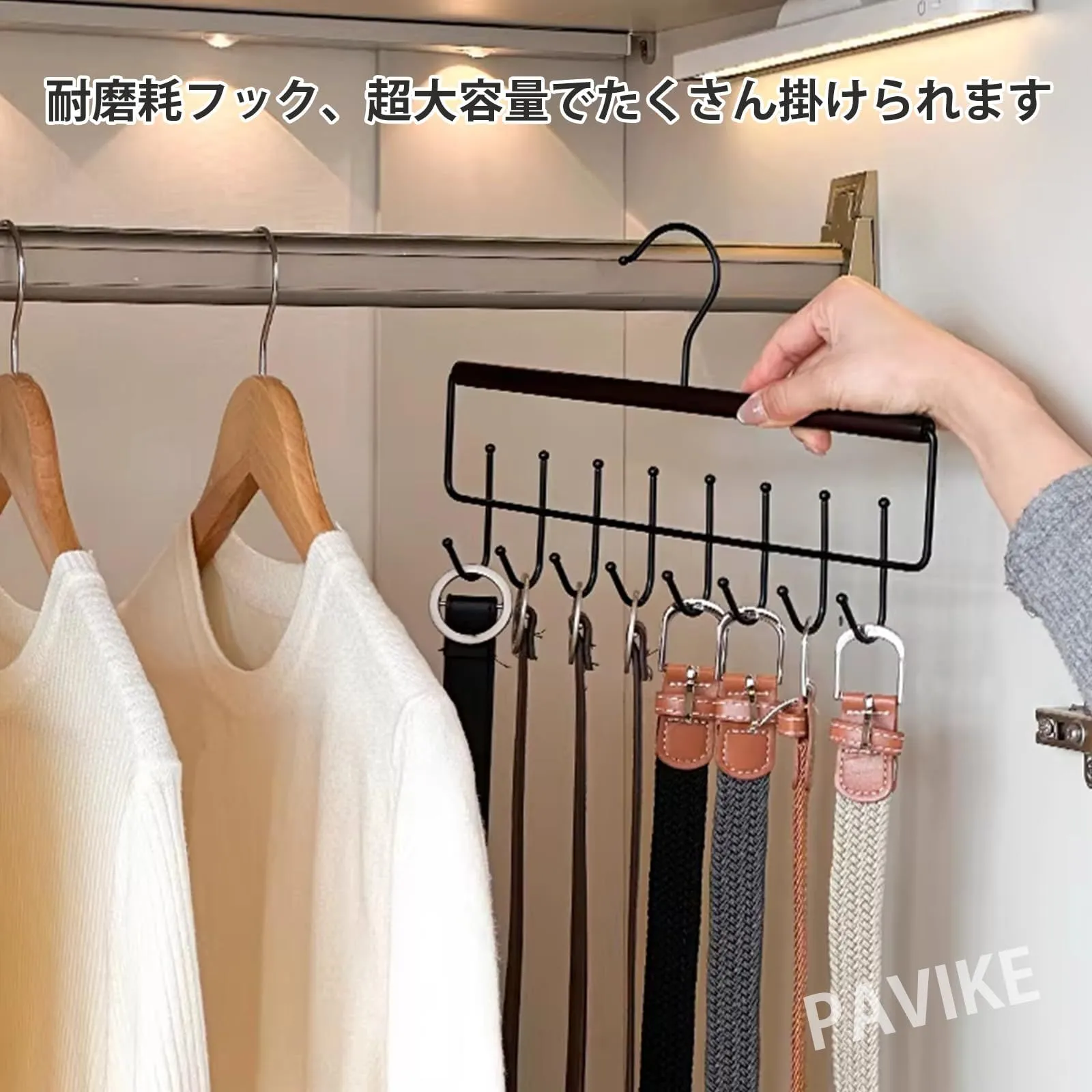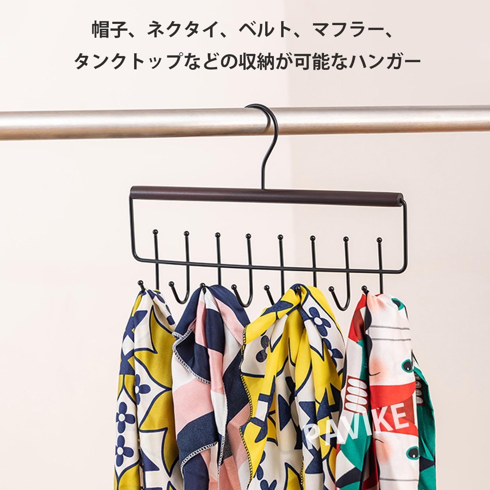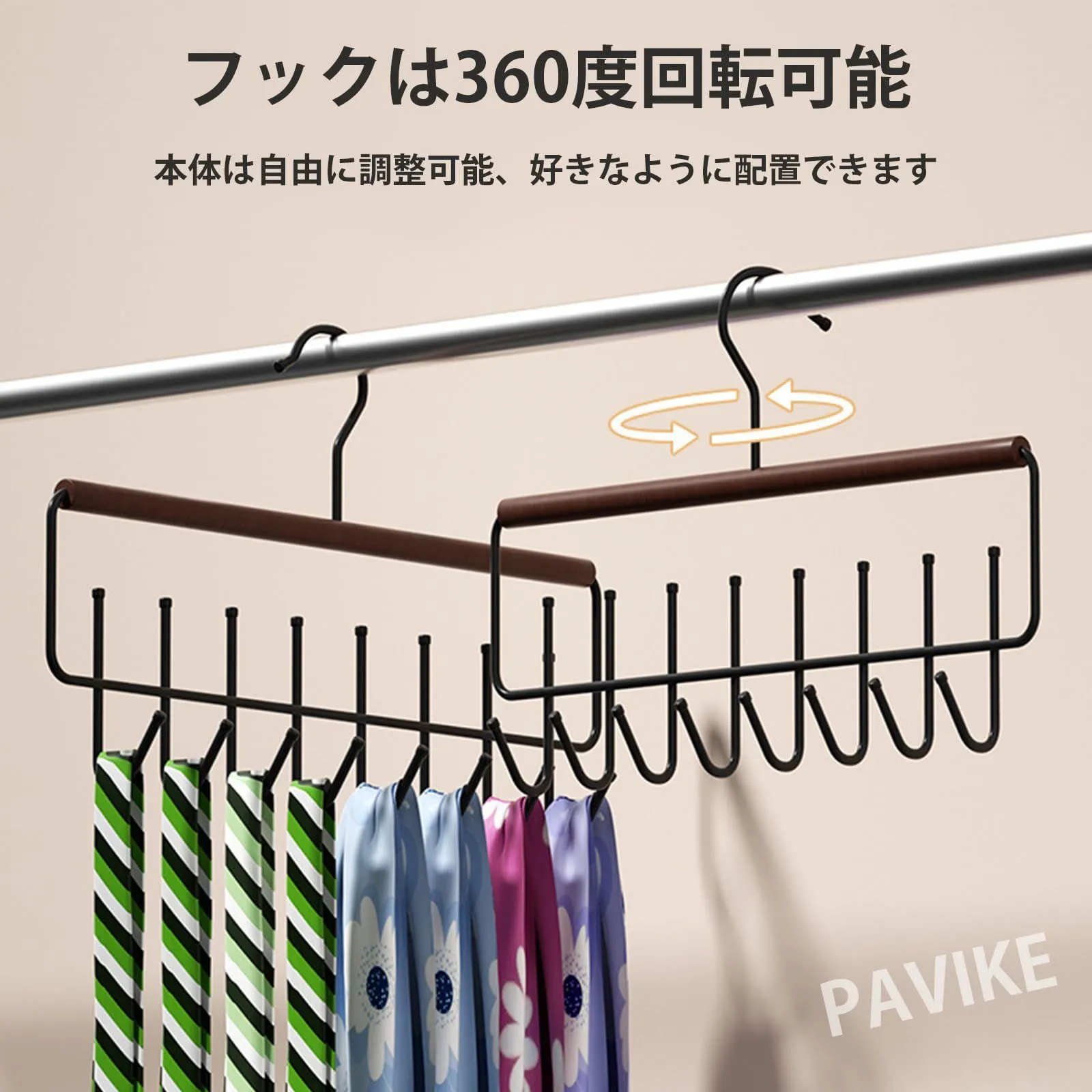 PAVIKE帽子掛け 帽子 収納 帽子ハンガー キャップハンガー 多機能収納ツール、360度回転可能、8つのフック設計、省スペース、吊り下げ式、帽子、ネクタイ、マフラー、下着などの整理に最適
