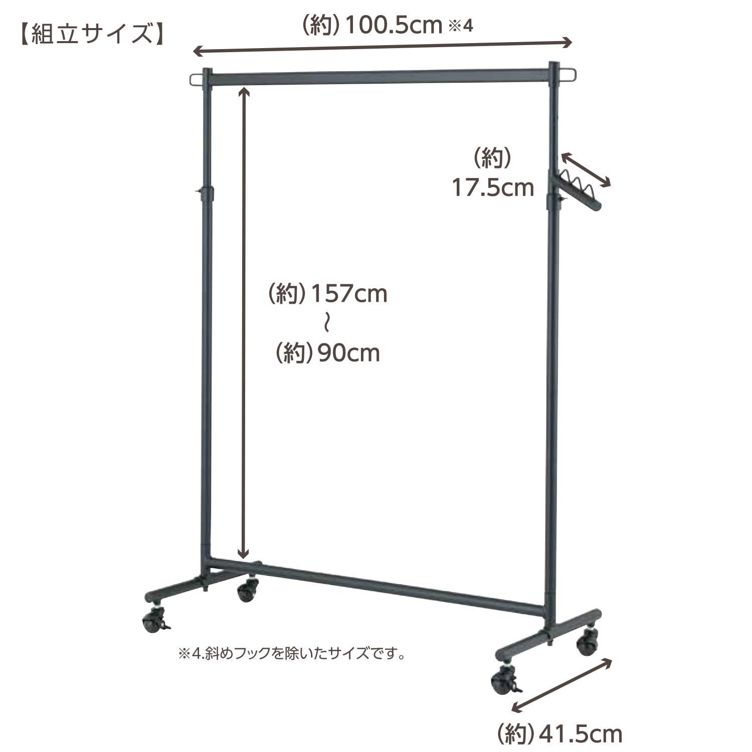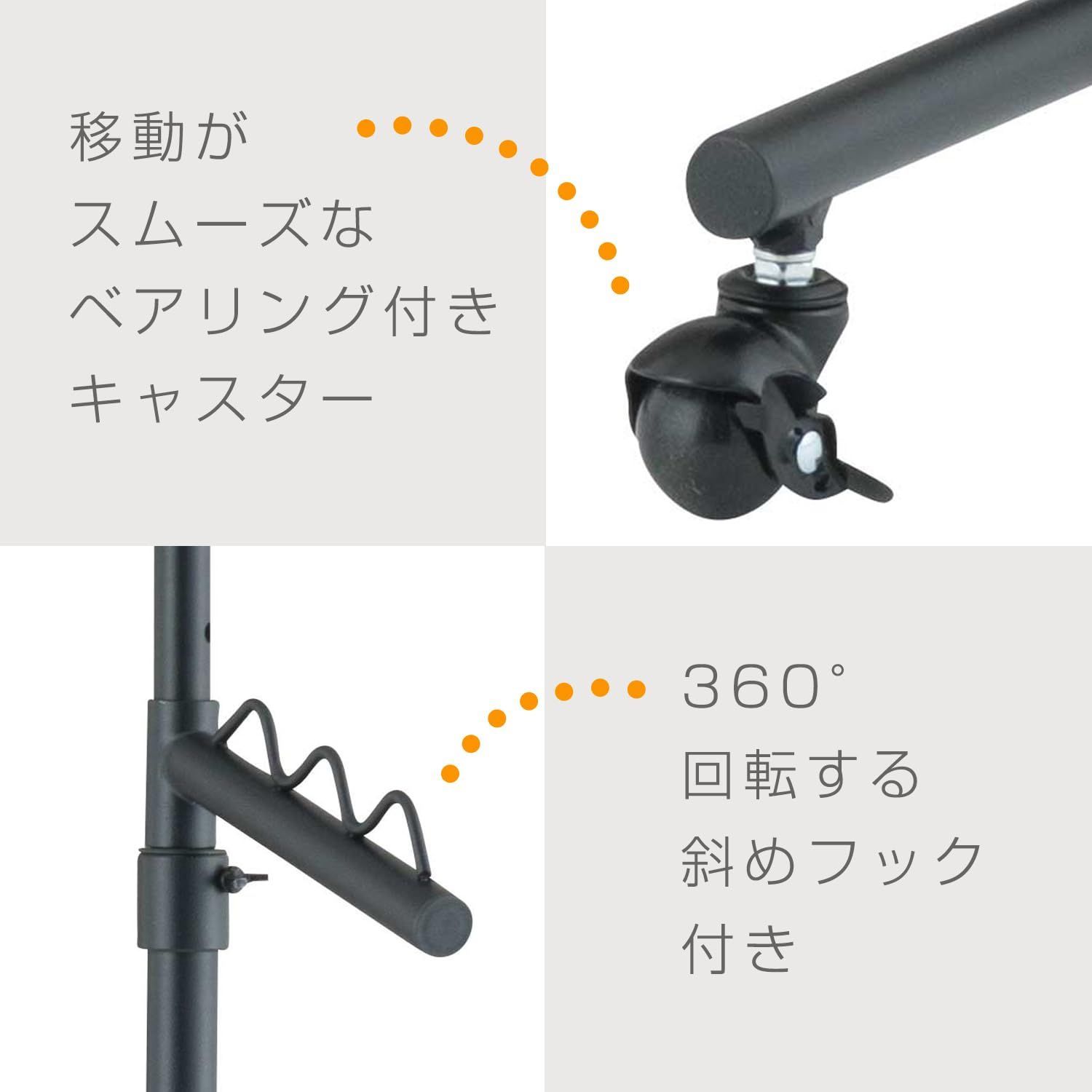 ドウシシャ ハンガーラック 耐荷重85kg 頑丈 幅100cm シングル 白 ホワイト おしゃれ 可愛い LIHS-100WH 幅100×奥行42×高さ108175cm キャスター付き 高さ上下伸縮式 斜めフック付き 室内干し パイプハンガー 洋服掛け 業務用