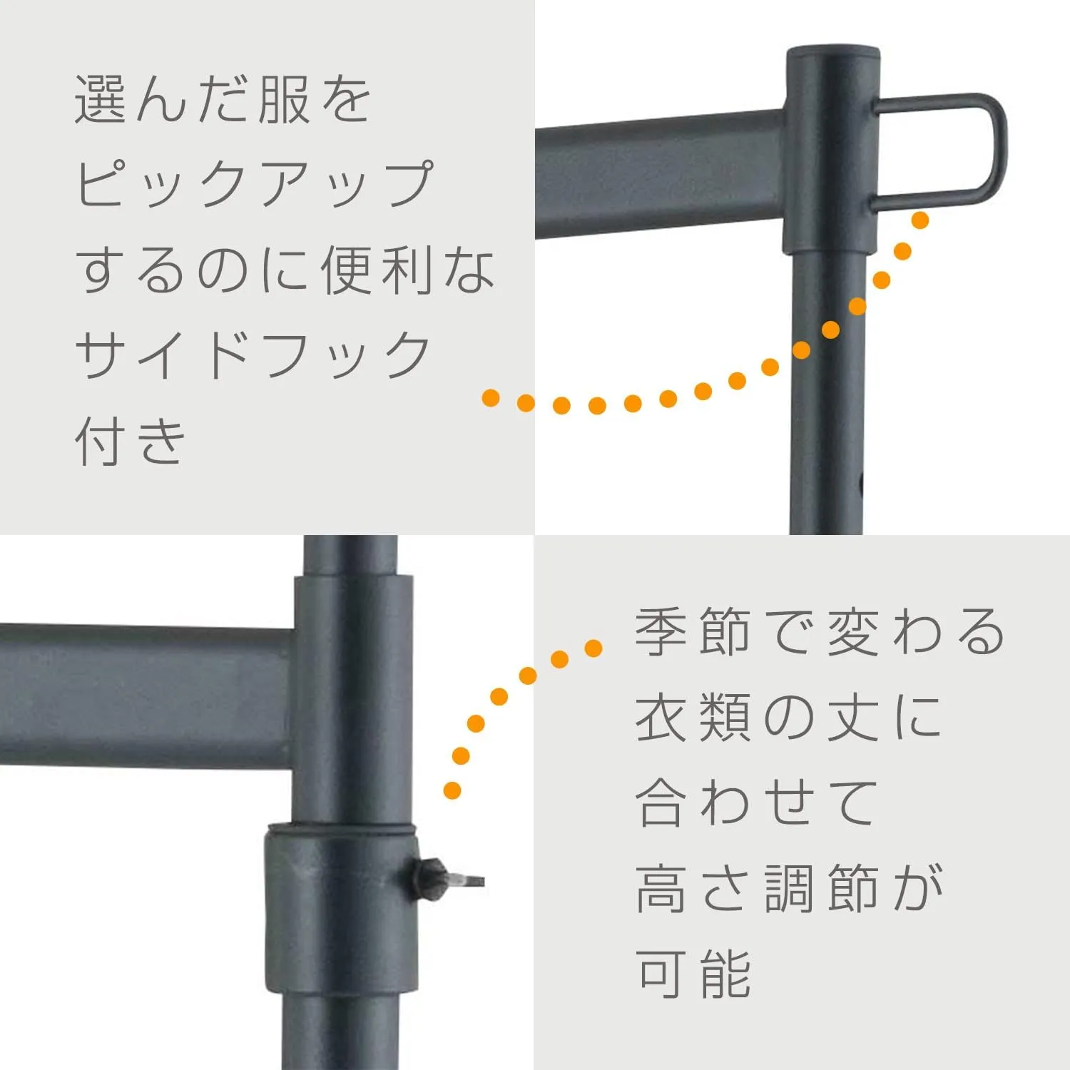 ・選んだ服をピックアップするのに便利なサイドフック付き
