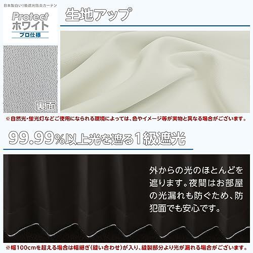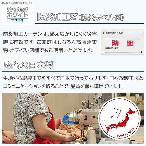 [カーテンくれない] 日本製白い1級遮光防炎カーテン「Protect ホワイト プロ仕様」 防炎 ラベル付 保冷 断熱 遮熱 一級 節電対策 サイズ:(幅)100×(丈)185cm×2枚入 / Aフック
