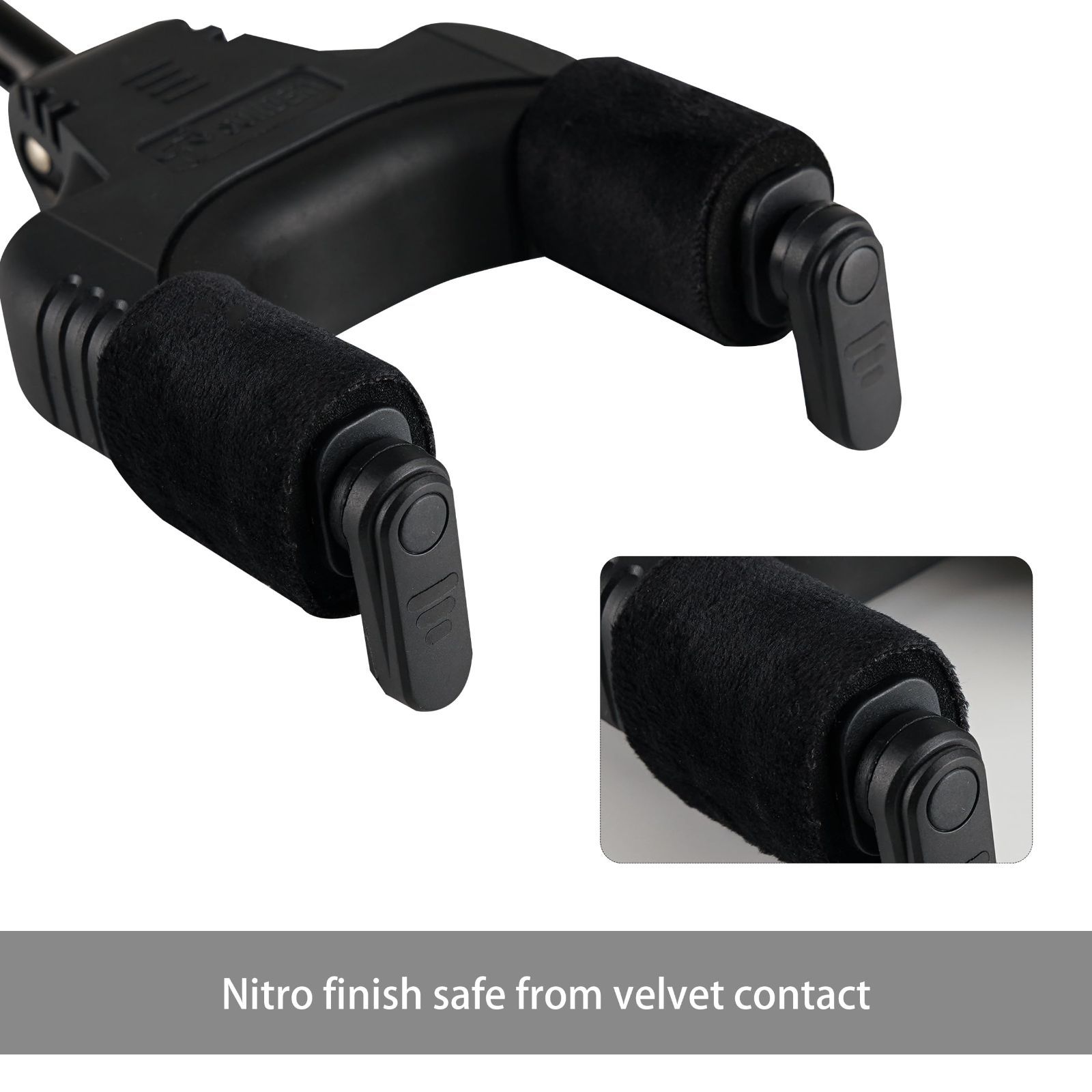 重力セルフロック技術を採用しています。 ギターのネックをアームに置くと、ギターは自動的にロックされます。 そしてギターを拾うと自動的にリリースします。 吊り下げ後のギターの落下を防ぎ、ギターをダメージから守るための安全性と効果を高めます。