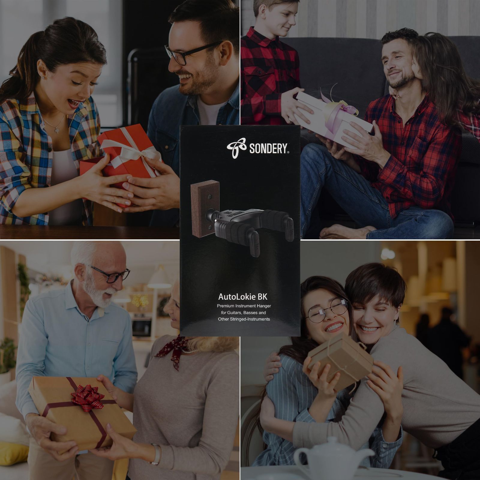 Sondery ギター ハンガー 壁掛け スタンド フック かべかけ ホルダー ウクレレ ベース 自動ロック 木製の壁または木製のスタッド 石膏ボード レンガ壁に簡単に取り付け (1個入り)