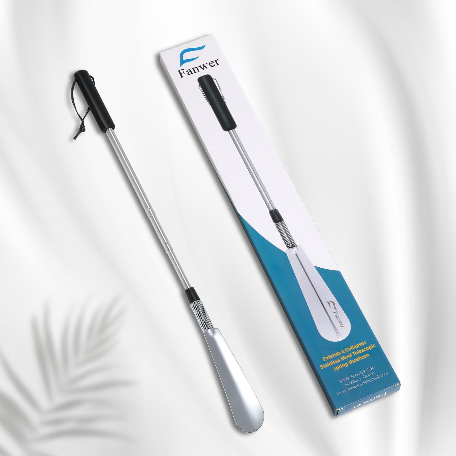 【バネ付き靴ベラ】アップグレード版のバネ接続により、靴ベラの角度が調節しやすく、より正確に靴のかかとに挿入できます。