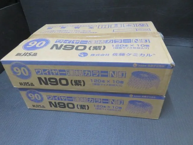 未使用 2箱セット 佐藤ケミカル N90 カラーN釘 120本 20巻セット N釘 ロールビス 紫