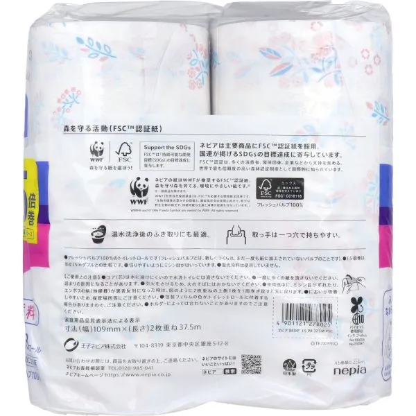 ■商品名:ネピア トイレットロール 1.5倍巻 無香料 ボタニカル柄 ダブル 37.5m×8ロール