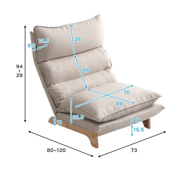 ・ソファ:W73×D80〜120×H29〜94cm