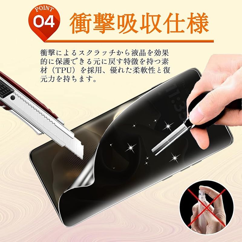 【柔軟な素材&バブルフリー】ご注意:保護フィルムは強化ガラスではなく、高品質の熱可塑性ポリウレタン(TPU)、柔軟な材料で作られており、スクラッチ防止、傷つきにくい、携帯電話の画面の曲がったエッジを完全にカバーすることができ、傷に対して最大の保護を提供します。小さい傷および空気泡は 24 時間以内に自動的に修理することができます。