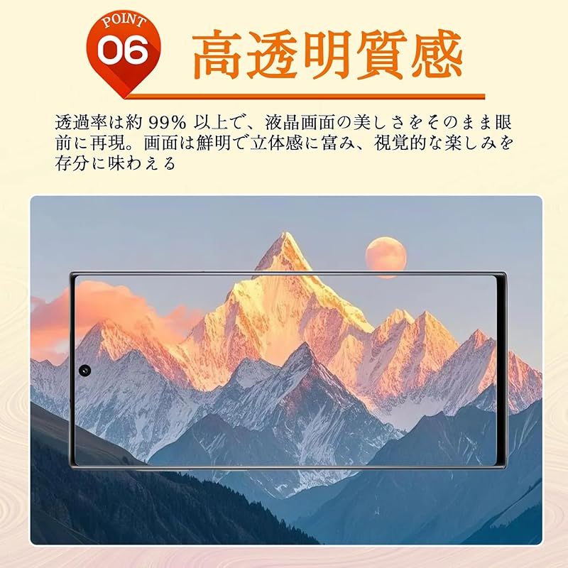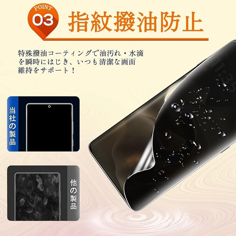 【快適なタッチ感!指紋防止・撥水撥油技術】真空蒸着技術を利用し、表面にナノコーティングを採用し、指紋防止薄膜を形成することで、滑らかであると同時にパワフルな耐油汚れ・汗染み・指紋性能を備え、汚れ防止効果はより長く持続でき、頻繁にスマホを拭く悩みがなくなります。