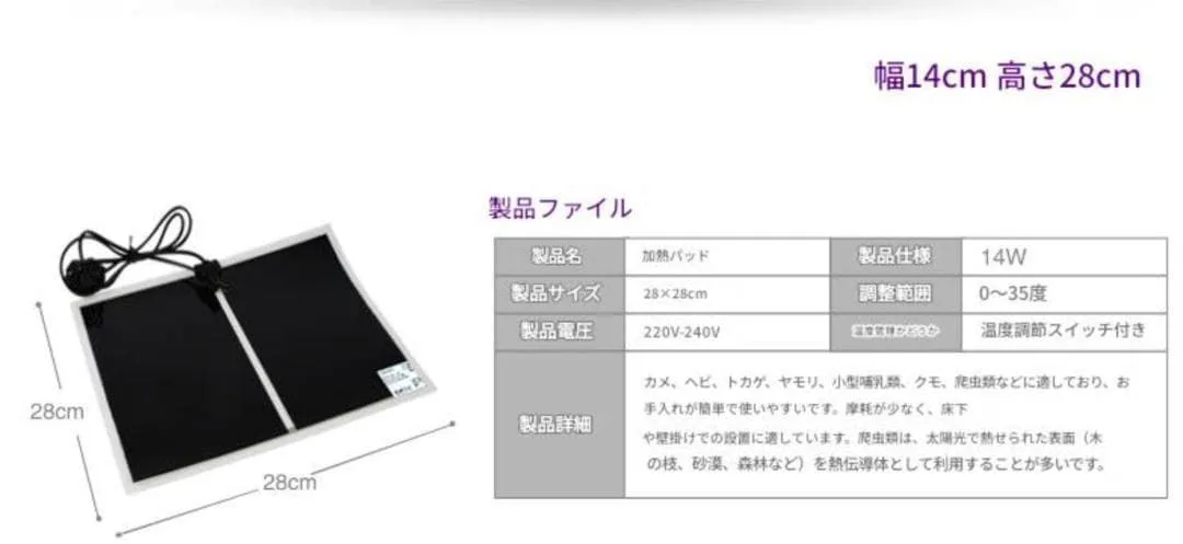 【14w 28×28】 ペット パネルヒーター 簡易温室 爬虫類 温度調 小動物