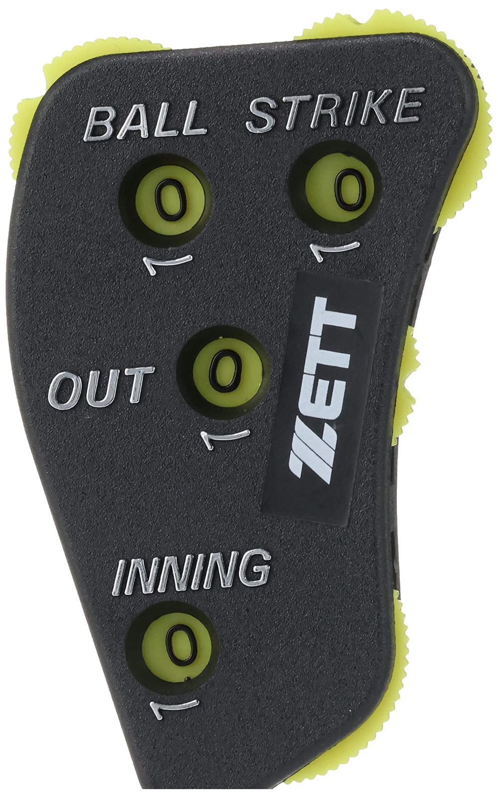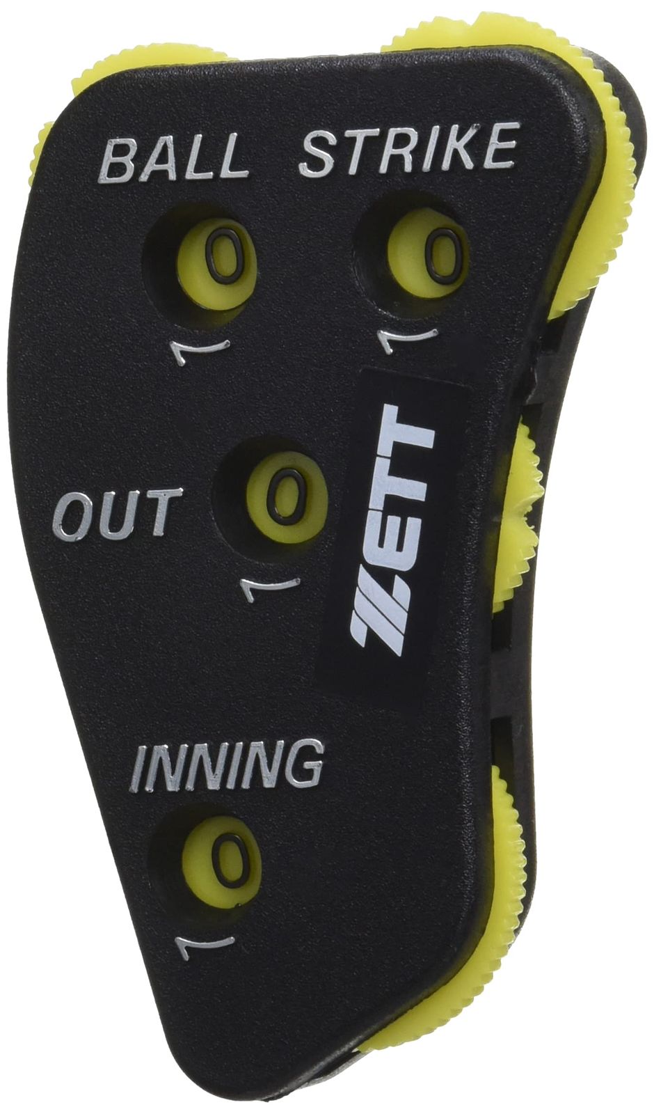 「BALL」「STRIKE」「OUT」「INNING」がはっきり確認できるカラーリングで、見なくても手の感覚だけで0(ゼロ)の位置が確認できるUカット機能付き。