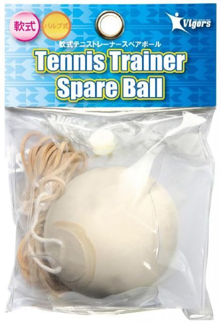 軟式テニストレーナーVSTN-3301対応のスペアボールです。(単体では使用できません)ゴムロープの伸縮によりボールが戻ってくる、実戦に近い練習ができます。初心者でもラリーを続けることができるため、ボールを捉える感覚が自然に養われ上達を助けます。セーフティバルブ仕様、高耐久でエア漏れが少ないバルブ。※道路や駐車場なのでの使用は危険です。安全な空き地や広場でご使用ください。ゴムの劣化によりロープが切れる場合がありますので、ご注意ください。※ボールは中空のため使用中、あるいは保管の際に中の空気が抜けることがあります。必ず軟式テニスボール用のポンプで空気を満たしてから使用してください。